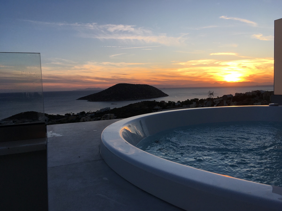 Beautiful rooftop apartment, roof top with a view of the sea, outdoor balcony and kitchen. 5 beaches within 1 mile all blue flag approved. Local bus and bus to Athens. We are located on what is known as the Athens Riveria. Shops, supermarkets only 1 mile away. Free use of local tennis tennis court. We provide towels, and beach towels. We also offer a free laundry service. If you have a baby or small child we have a crib bed, also have a baby stroller, and highchair.