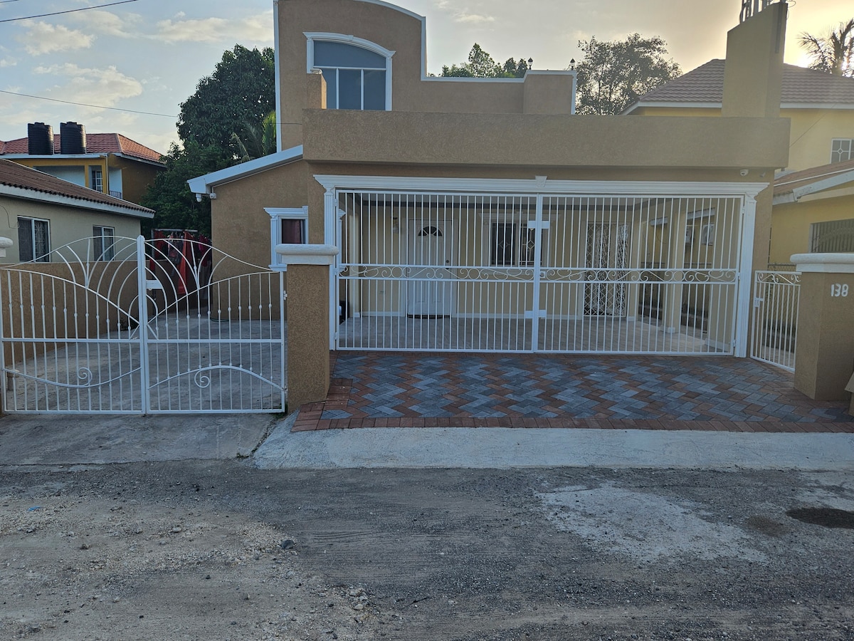 Casa de un dormitorio recién construida y amueblada en una comunidad residencial muy tranquila y silenciosa, cerrada, con seguridad las 24 horas, en St. Catherine. La casa está idealmente ubicada a solo unos minutos de la carretera de peaje de Spanish Town, lo que hace que sea de fácil acceso sin tener que encontrar mucho tráfico. Kingston está a 25 minutos y Portmore a 10 minutos. La casa está muy bien amueblada y tiene aire acondicionado en el dormitorio (solo) y otras comodidades para que te sientas como en casa.
