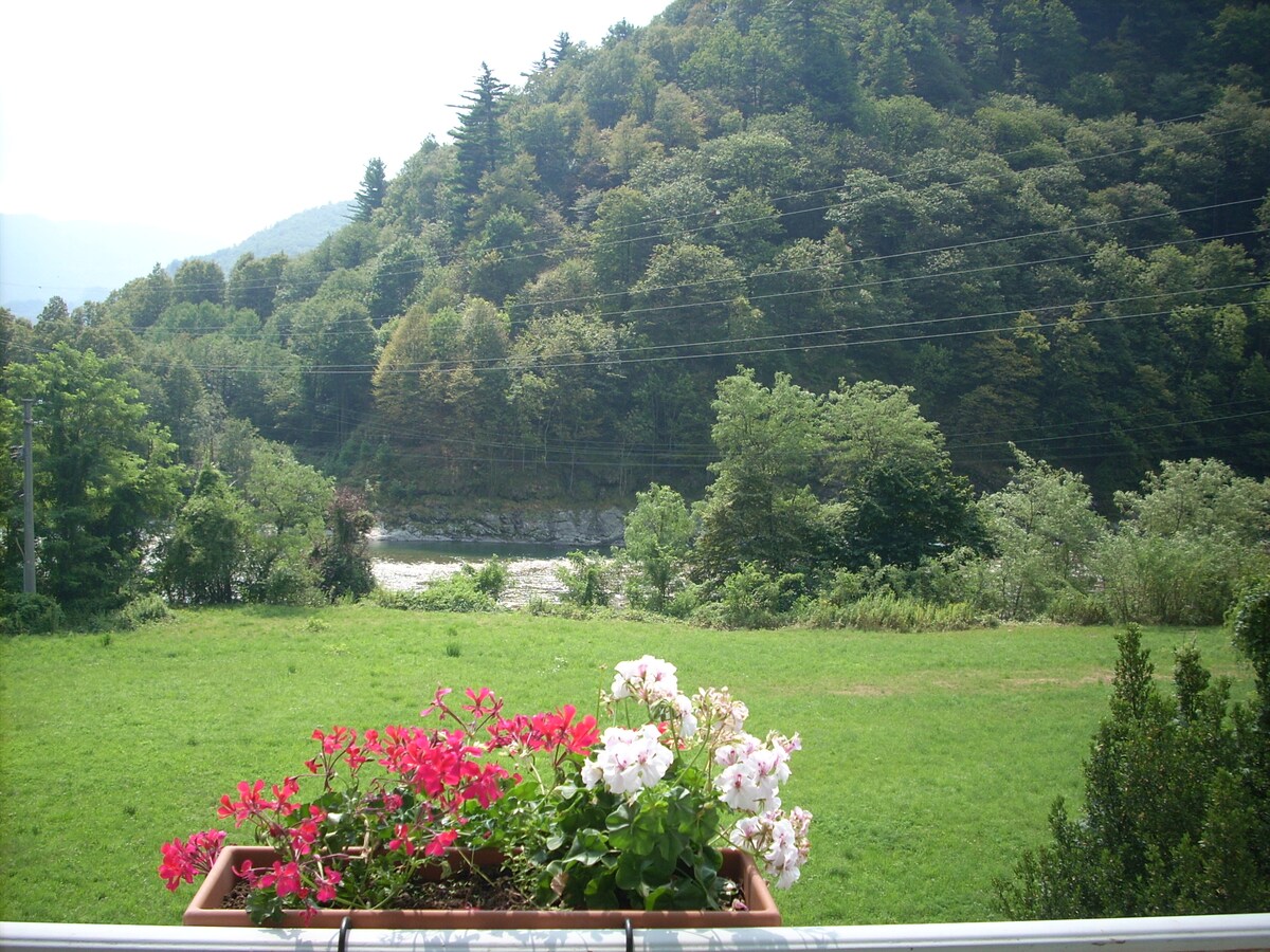 Wifi gratuito. Renovado en la primavera de 2017. Cerca del puente Antonini, en el corazón del viejo Varallo, hemos renovado por completo una casa de piedra de 1500. con vistas al arroyo Mastallone. Desde las 4 puertas francesas que dan al balcón a lo largo de todo el frente de la casa se puede admirar el Santuario del Sagrado Monte de Varallo: ver SITIO SAGRADO MONTE DE VARALLO