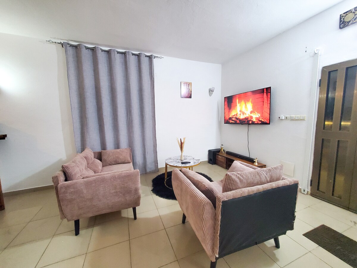 Bienvenido a nuestro moderno apartamento en Lomé. Disfruta de la comodidad y el estilo en este apartamento completamente amueblado ubicado en Amadahome, a 25 minutos del centro de Lomé, a 27 minutos del aeropuerto, en un vecindario tranquilo. Cámaras de vigilancia al aire libre y un guardia de seguridad en el turno de noche. El servicio de alquiler de coches está disponible. Para garantizar la comodidad y el respeto por el espacio, todos los huéspedes pueden recibir hasta 2 visitantes a la vez. Gracias por tu comprensión. {Wifi gratuito, agua, gas para cocinar} El huésped es responsable de la electricidad