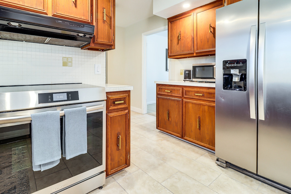 Rancho de mediados de siglo con 4 dormitorios justo enfrente de Royal Oak. El solárium acristalado es la pieza central: televisor de 70 pulgadas, chimenea eléctrica, juegos de mesa, mesa de juegos con pantalla táctil y mesa de comedor para 8 personas, todo ello detrás de un acristalamiento de suelo a techo con vistas al patio trasero. Salga al patio vallado privado para disfrutar de la parrilla de carbón, la hamaca y los asientos al aire libre, o quédese dentro junto a la chimenea de la sala de estar. Cocina completamente surtida, suite en el sótano con ducha de efecto lluvia, punto de carga para vehículos eléctricos en el segundo piso y estacionamiento gratuito e ilimitado en la calle.