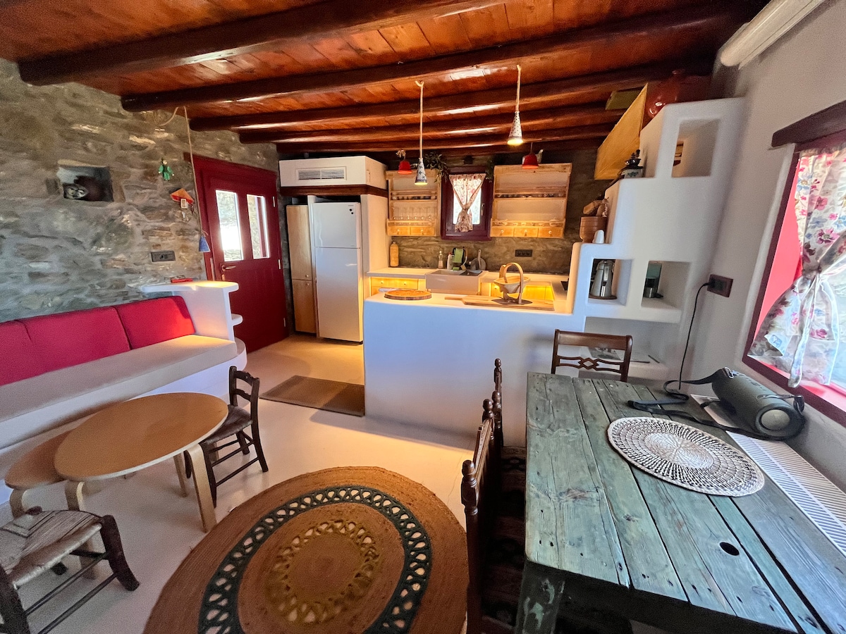 ¡La casa está en una ubicación tranquila y hermosa con vistas al mar! Esta es una pequeña casa autónoma para dos personas, que buscan una estancia tranquila y apacible, en un lugar cómodo y hermoso de estética cicládica. (Durante los períodos de fuertes vientos en la isla, puede haber breves interrupciones en la electricidad o el wifi. Por lo general, se resuelven muy rápidamente para que puedas seguir disfrutando de tu estadía sin preocupaciones.