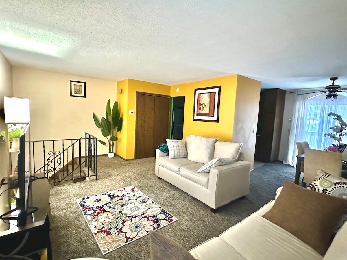 Desde este alojamiento céntrico todo el grupo podrá disfrutar del fácil acceso a todo. A pocos pasos hay millas de senderos de bicicleta arbolados. En la esquina se encuentra uno de los lugares de entretenimiento más grandes del Medio Oeste, el Mermaid Entertainment & Events Center. Saluda al chef ejecutivo Jordan Reed. La cocina está preparada para cocinar. Café incluido. Por favor, ven y disfruta de una estancia. Si las fechas completas de tu viaje no están disponibles, te recomiendo un hotel para parte de tu viaje. Gracias.
