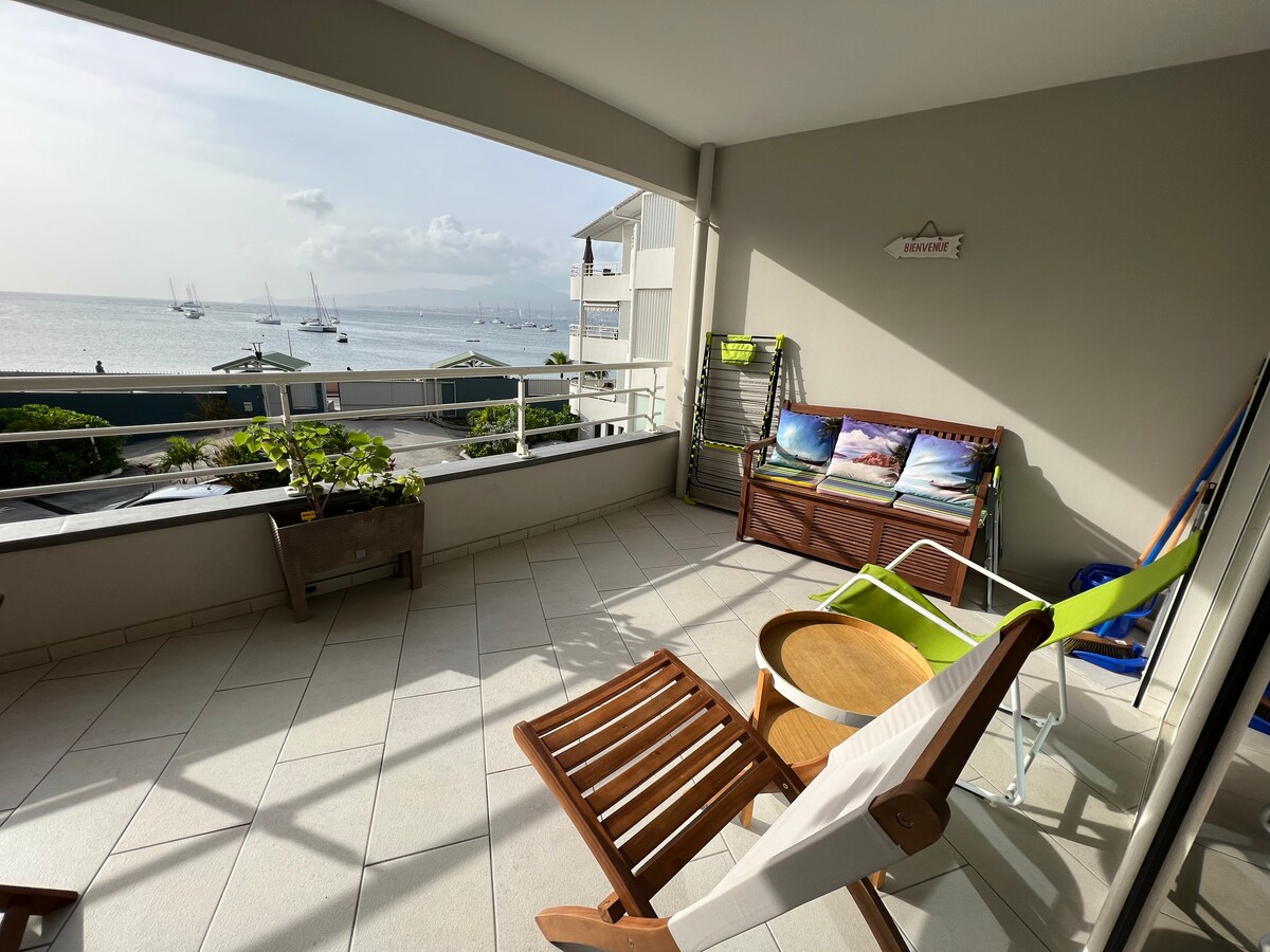 EL APARTAMENTO SUNSET BEACH (con ascensor) El apartamento Sunset Beach es un magnífico apartamento de tres habitaciones totalmente equipado, amplio y cómodo, de 85 m², situado frente a la playa en la urbanización «Les Terrasses de la Plage» en Les Trois-Îlets. La playa de Anse Mitan está a 20 metros. Desde la terraza amueblada, se puede disfrutar, en la mesa o desde los muebles de jardín, de las vistas al mar y a la bahía de Fort-de-France. La cocina, muy bien equipada y con barra, da al amplio salón y a la terraza.