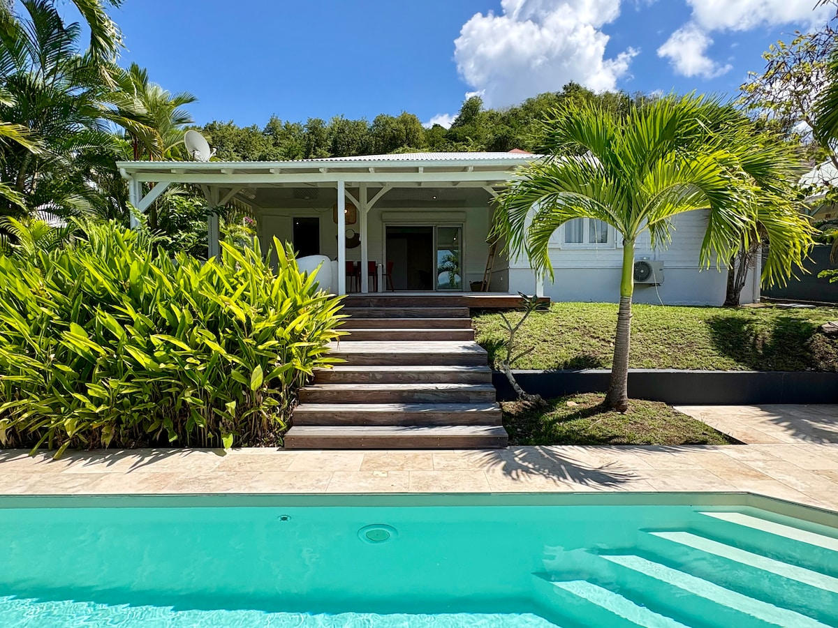 Located in a quiet corner in the south of the island in the popular town of Anses d'Arlet, the villa boasts breathtaking views over the bay of Petite-Anse. Tucked away in a peaceful residential neighbourhood, the villa offers a small pool, a terrace and a garden complete with its barbecue set and outdoor dinner table. A fully equipped modern kitchen, and 2 bathroom complete this comfortable property, which we hope you will enjoy.
