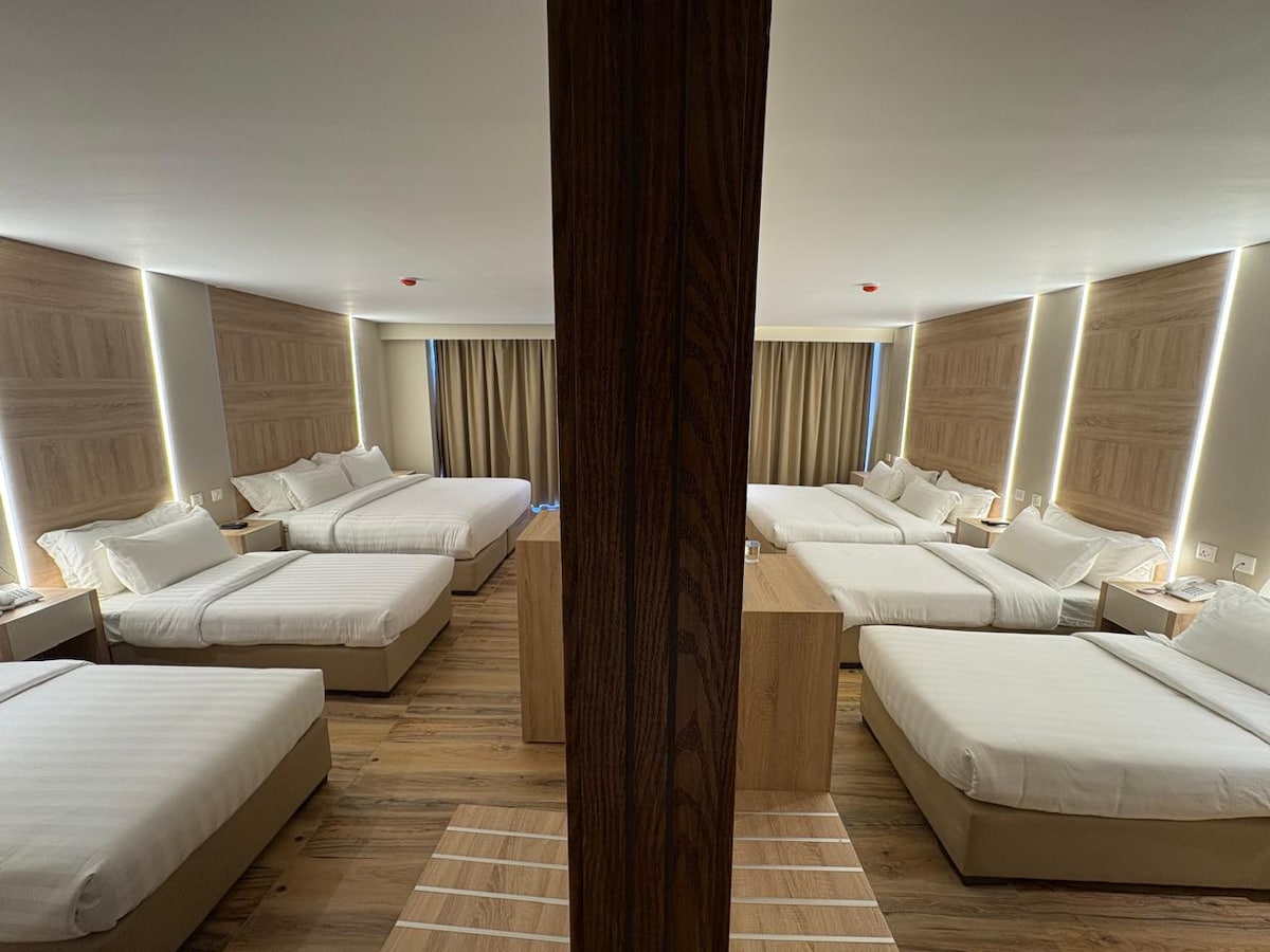 ¡Te damos la bienvenida a tu acogedor oasis en el corazón de Aqaba! Nuestro dormitorio triple con baño privado te ofrece la combinación perfecta de comodidad y conveniencia durante tu estancia en esta hermosa ciudad costera. El dormitorio está cuidadosamente diseñado para proporcionarte un refugio pacífico después de un día de explorar las impresionantes playas y la vibrante cultura de Aqaba. Encontrarás un cómodo 3 individuales, lo que garantiza una noche de descanso reparador. La habitación está bañada por la luz natural, creando un ambiente cálido y acogedor.