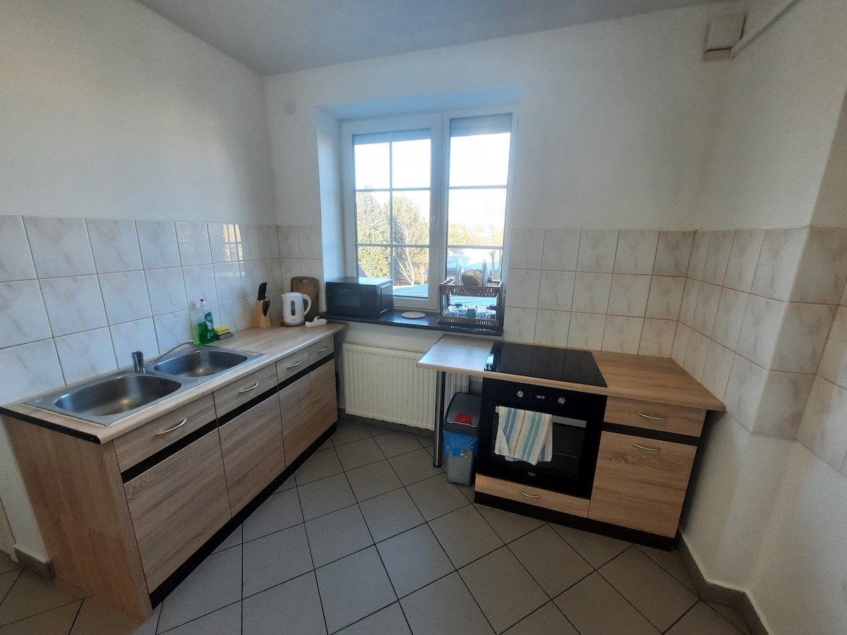 Bienvenidos. Se alquila un apartamento acogedor y alto de 30 m2, situado a 4 km del casco antiguo y del castillo de Lublin y a 1,5 km de la estación de tren. Consta de una amplia cocina americana conectada con la zona de noche y un baño con ducha. Equipado con TV de 42", Netflix, HBO, wifi, nevera, lavadora, cocina, microondas, vajilla, cubiertos, toallas limpias y ropa de cama. El apartamento tiene una cama doble de 140x200 cm con un cómodo colchón Ikea y un sofá cama adicional.