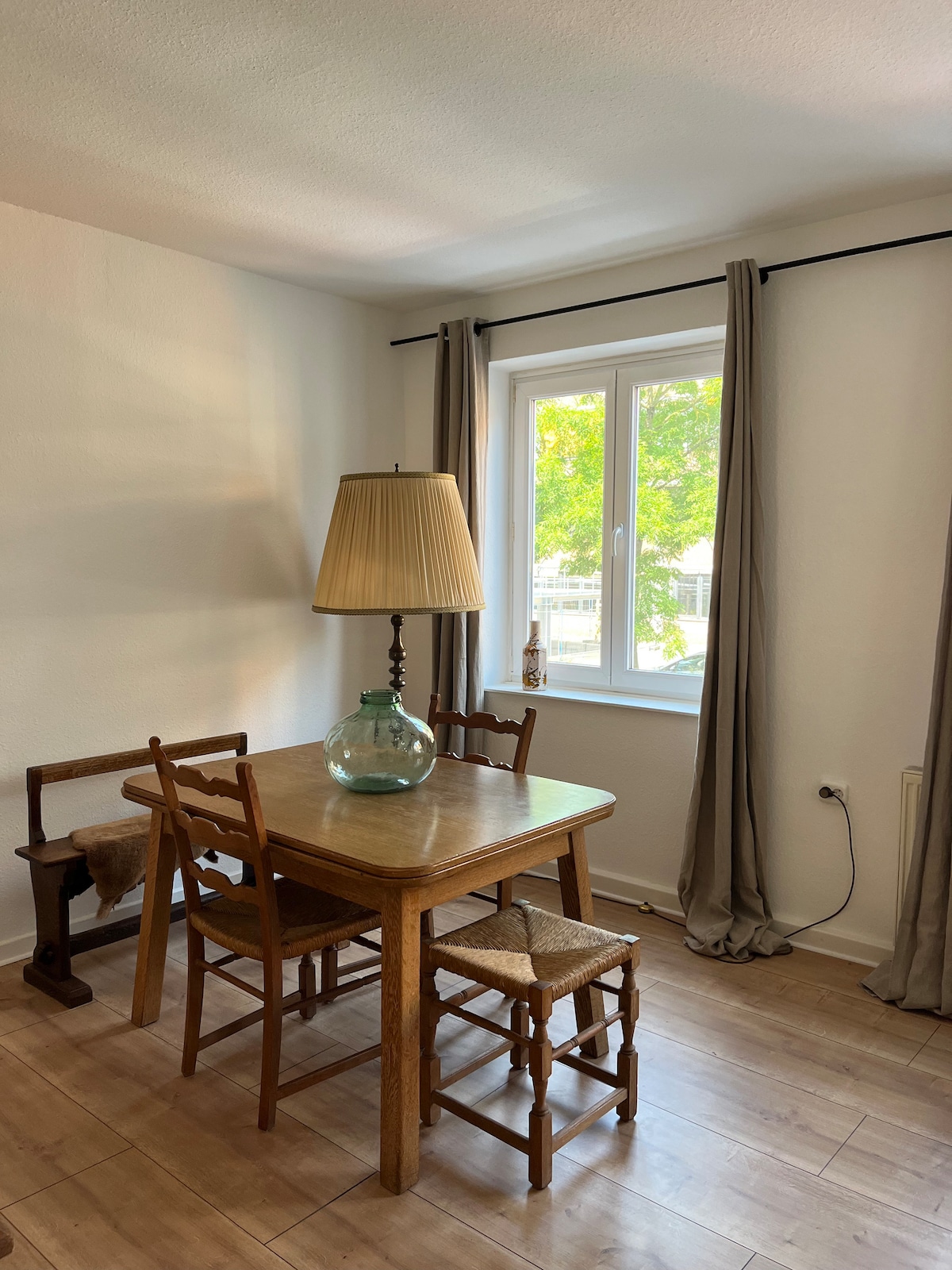 El apartamento está situado en el primer planta y se puede acceder a través de una escalera exterior. Aquí también hay una pequeña terraza que se puede utilizar. Las paredes interiores están enlucidas con yeso de arcilla y el suelo está revestido con tablas de madera. El apartamento está situado en una tranquila calle lateral. El transporte público (autobús y tren) se encuentra en las inmediaciones. Se puede llegar a una conexión regular con Aquisgrán, Herzogenrath o los Países Bajos en 10-15 minutos a pie.