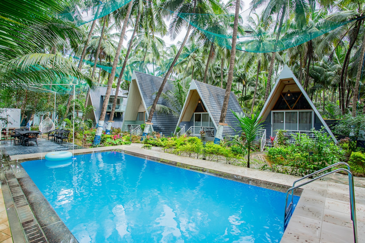 Romantic A-Frame Cottage w Pool, Goa Luxury Escape