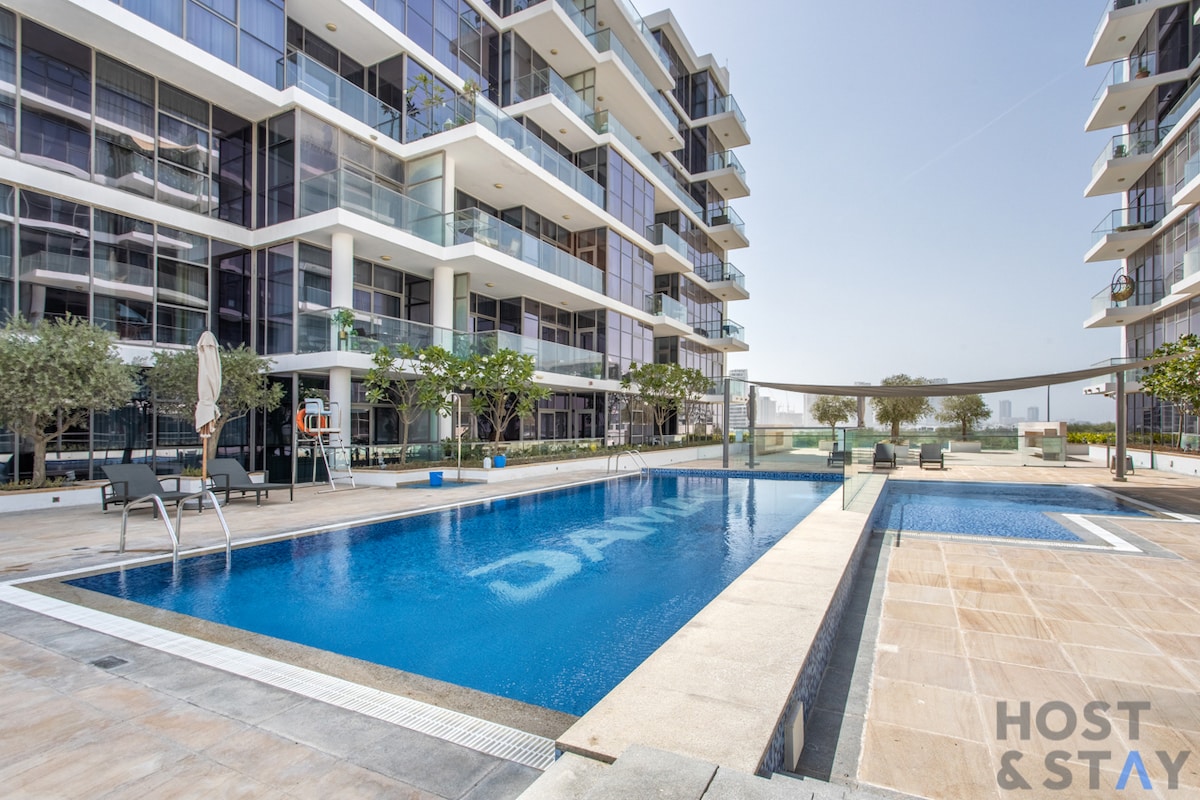 Acogedor apartamento de 1 dormitorio en el sur de Dubái con piscina