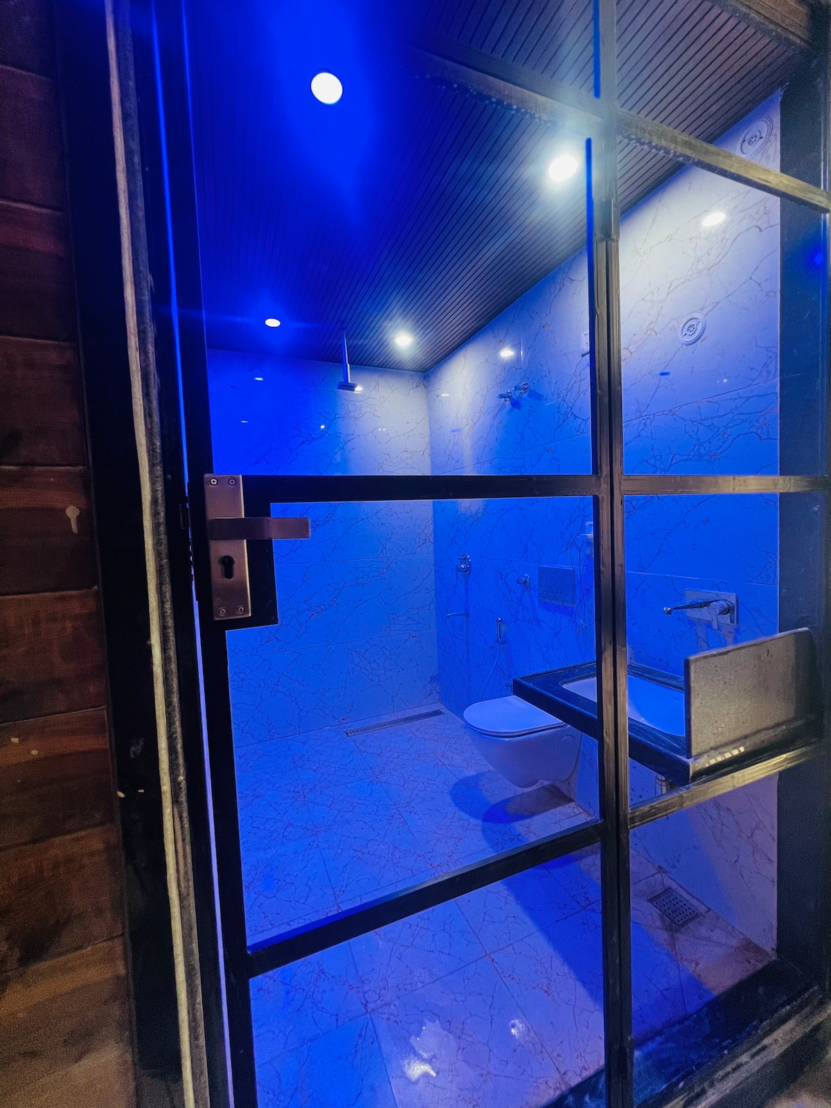 Disfruta de la máxima comodidad de nuestra espaciosa habitación doble de lujo, diseñada para parejas, familias y amigos. La habitación cuenta con dos aparatos de aire acondicionado, lo que garantiza una estancia fresca y cómoda, junto con un baño grande y lujoso que ofrece un amplio espacio y accesorios modernos. Los huéspedes también pueden relajarse en el sereno jardín al aire libre, perfecto para relajarse en medio de la naturaleza. Con interiores acogedores, una lujosa cama doble y todos los servicios esenciales, incluido el wifi, tu estancia será relajante y práctica.