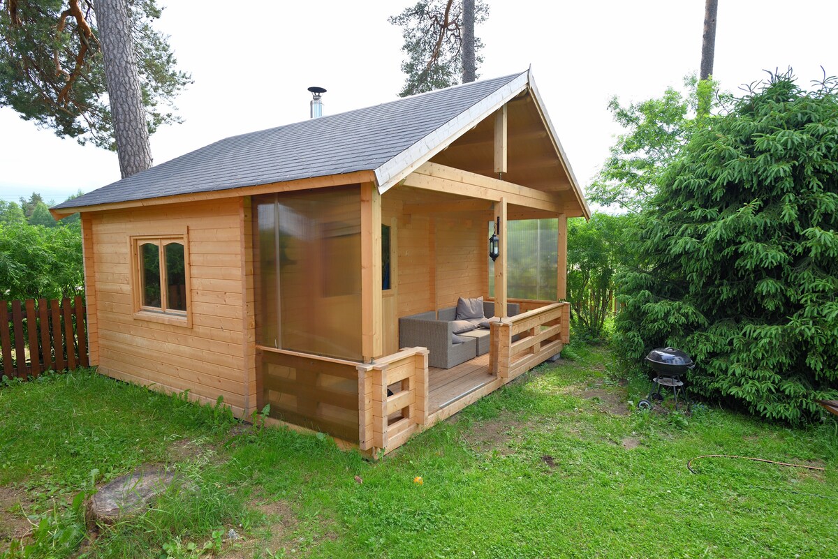 The sauna can comfortably accommodate six people, although the terrace has room for even more people. Downstairs you can sleep on a large sofa bed, upstairs there are two large 160cm mattresses. A staircase takes you to the second floor from outside. Pillows-blankets, bed linen and bath towels are provided. The kitchen has everything needed for cooking. There is a barbecue outside, but bring your own charcoal, please. There is also barrel hot tub near the river for extra cost of 60 EUR in cash.