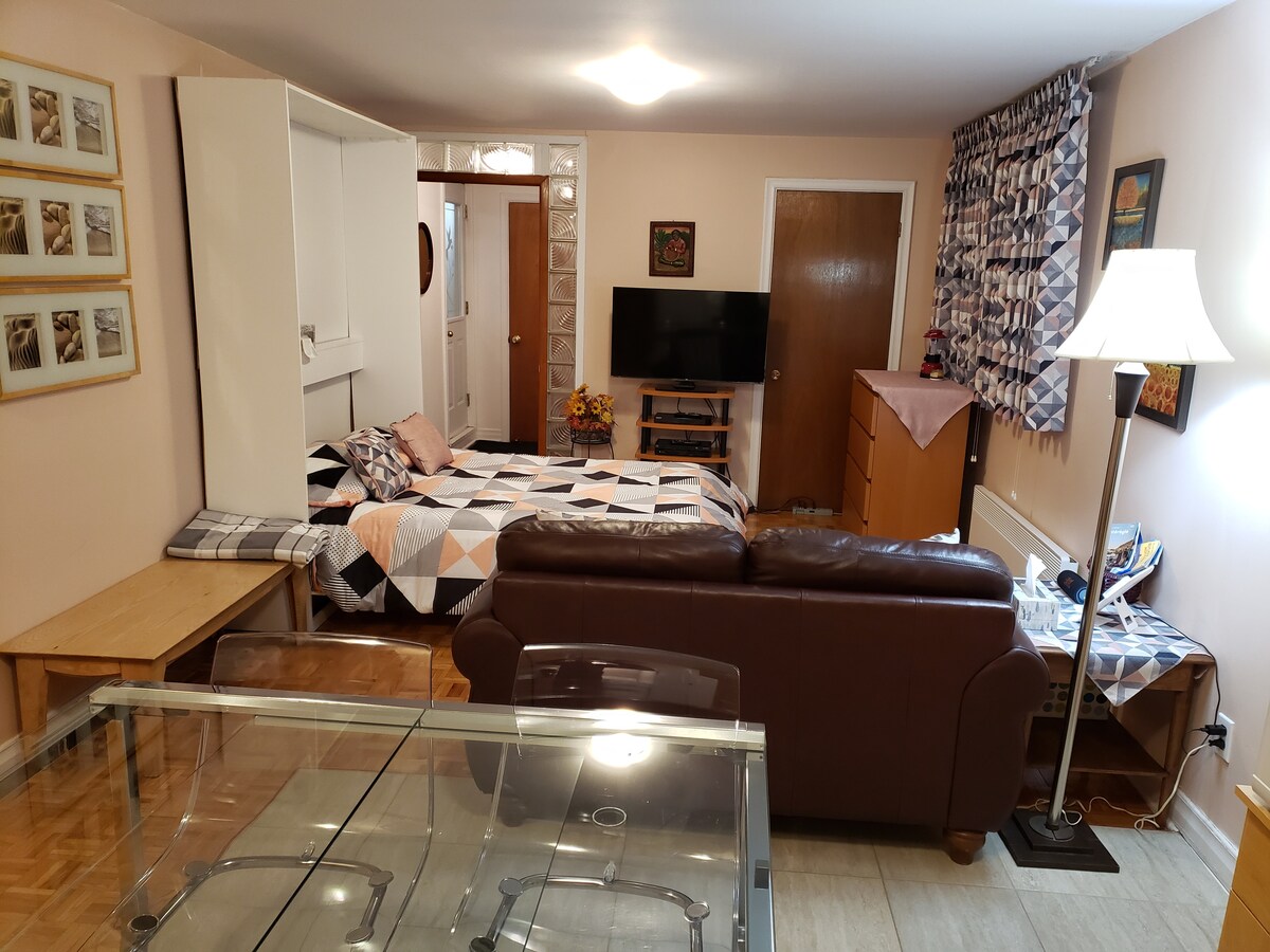 Logement bien éclairé tranquille accueillant dans une petite ville ou tout est accessibles magasin transport à 20minutes de Montréal 15 minutes des pentes de ski a10 minutes des sentiers pédestre proche de piste cyclables quartier calme tranquille affilié et inscrit au ministère du tourisme Québec et acrediter pour la covid des entretiens sont effectués entres chaque client une désinfection entière du logement tous les draps serviettes tous est désinfecter et votre entrée est individuelle le propriétaire habite l étage supérieur mais votre logement n est pas partager meme si il y a d autres portes fermées et non partagés