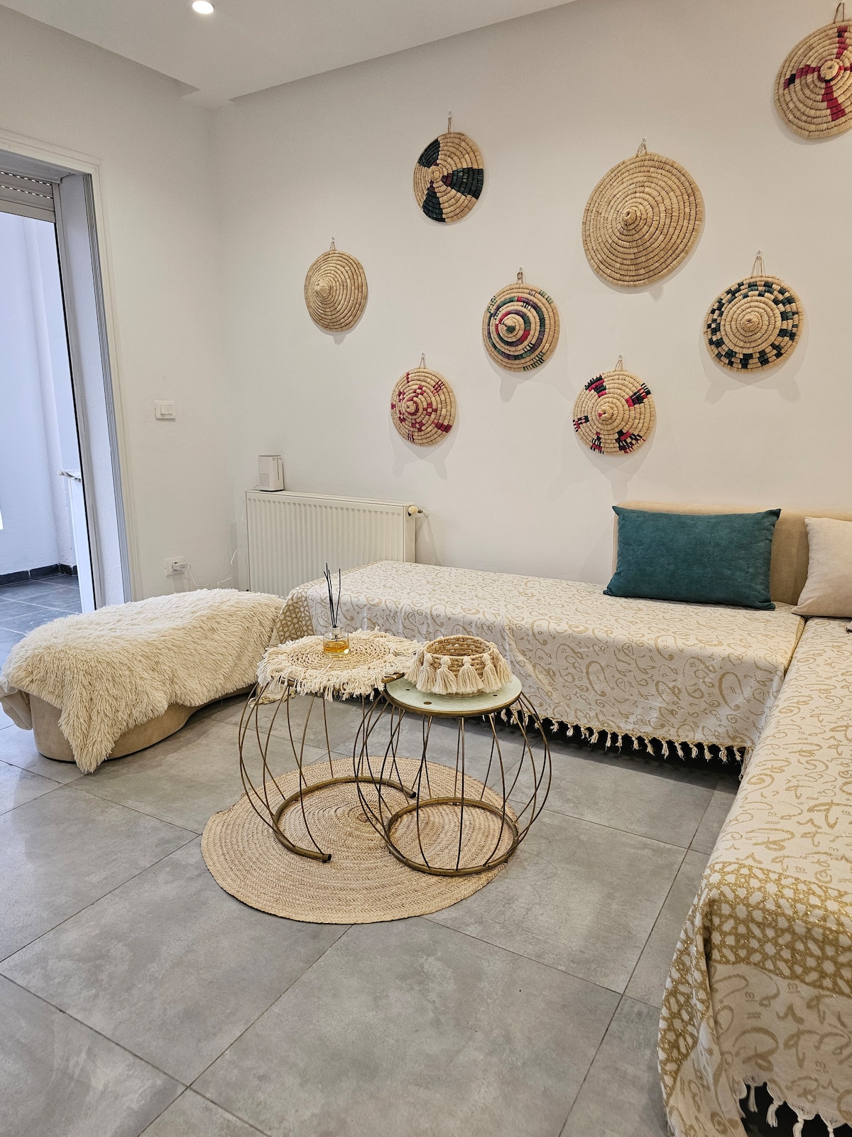 Situé dans un quartier récent, à proximité de toutes les commodités, cet appartement unique est un véritable hommage au savoir-faire des artisans locaux, qui ont tous contribué à sublimer cet espace. Dans une atmosphère chaleureuse et accueillante, vous aurez l’occasion de vivre pleinement l’authenticité et la richesse de la culture artistique tunisienne, incomparable en son genre. Chaque détail a été soigneusement pensé pour vous garantir une expérience de séjour inoubliable.