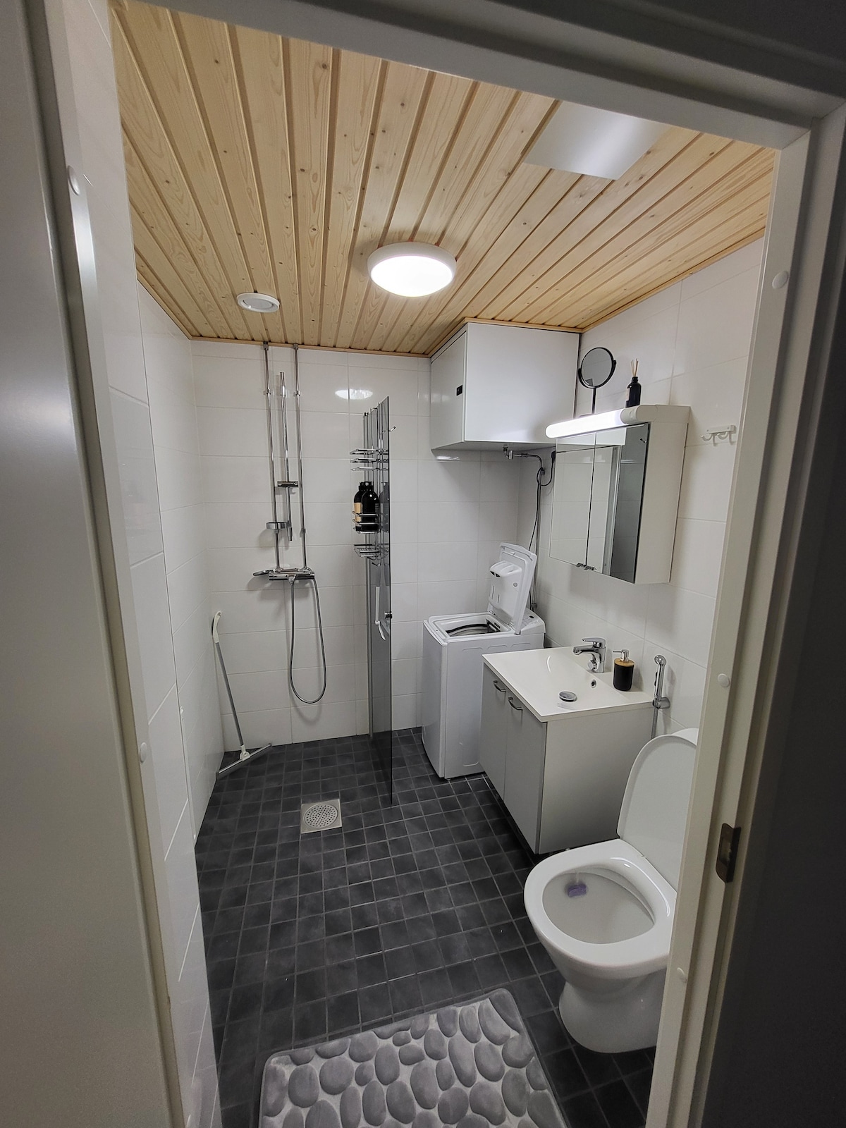 Disfruta de tu estancia en este tranquilo estudio cerca del centro de la ciudad y de la orilla del río. El alojamiento incluye una cama doble (160 cm), una cama supletoria, conexión wifi y una cocina para cocinar. El departamento tiene TV, lavavajillas y lavadora. Sábanas y toallas incluidas. Ascensor en la casa. Estacionamiento gratuito. - A 3 minutos a pie de la parada de autobús con acceso a Santa Claus Village. - A 5 minutos a pie de tiendas y restaurantes. - A 2 km de la estación de tren. Será un placer ayudarte con cualquier pregunta.