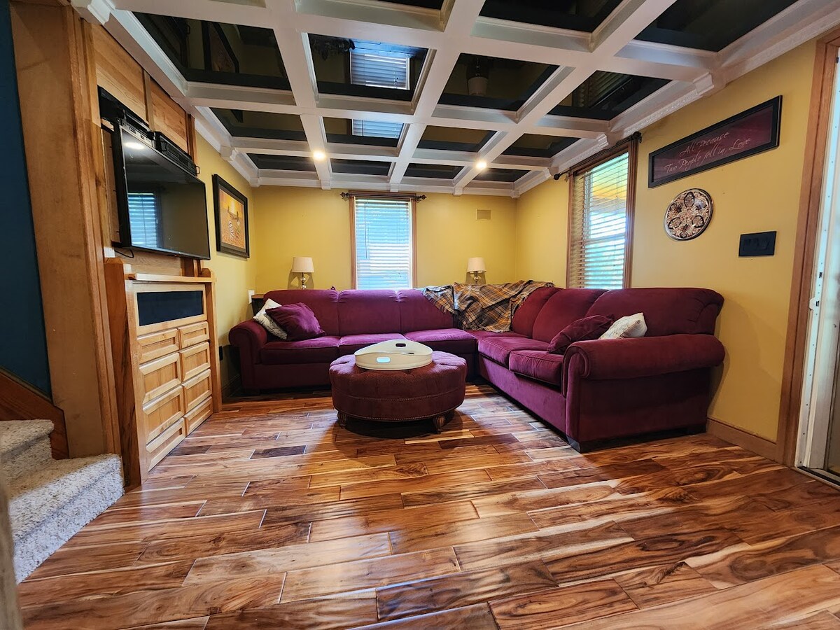 Ven a alojarte en el Lodge on the Leap para una escapada refrescante. Siéntate y relájate en el porche cubierto y mira a los Mini burros y cabras en el campo. También puedes ver un ciervo o un pavo ocasional. Siéntate junto al estanque o da un paseo por uno de los numerosos senderos para caminar. Recientemente hemos convertido nuestro sótano en un pintoresco apartamento de 2 habitaciones. Se completa con una sala de estar, cocina completa, área de baño y lavandería. Ambas habitaciones tienen una cama tamaño queen.
