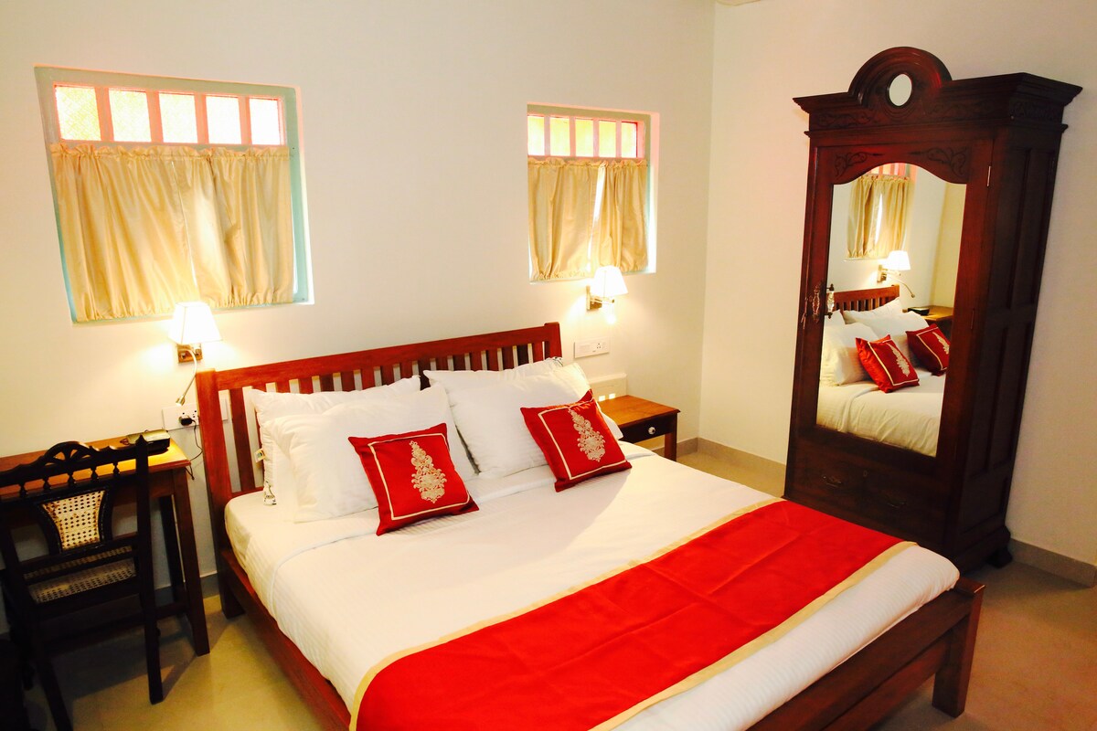 Te damos la bienvenida a nuestra casa ancestral de 90 años de antigüedad en Parra, Goa. Ubicado a 5 minutos de la ciudad de Mapusa y a 15 minutos en auto de las playas más cercanas, este alojamiento ofrece la combinación perfecta de encanto patrimonial y comodidad moderna. Diseñado con arquitectura de estilo patrimonio y elementos sostenibles, este alojamiento es ideal para familias, viajeros solitarios y trabajadores remotos que buscan un refugio tranquilo pero bien conectado. ¡Ven a experimentar el encanto lento y conmovedor de Goa!