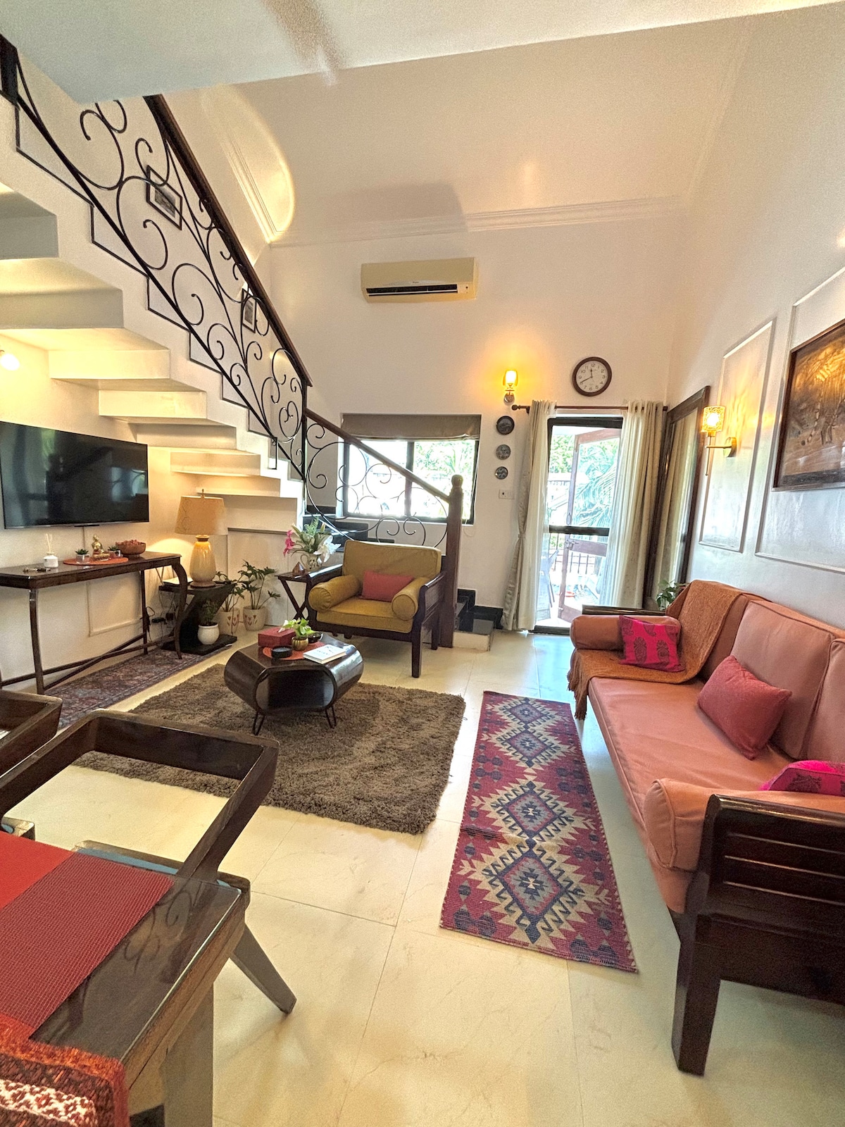 Moderno apartamento Boho | A minutos de las playas del norte de Goa. Un acogedor refugio de 1BHK totalmente amueblado en la planta baja perfecto para parejas, amigos o familias pequeñas. LO más destacable: - Interiores boho elegantes con un ambiente cálido - Aire acondicionado en el dormitorio y la sala de estar para mayor comodidad. - Televisión inteligente + WiFi de alta velocidad. - Cocina equipada con agua RO, encimera, nevera y lavadora. - Piscina compartida (9:00 a. m. a 6:00 p. m. | traje de baño obligatorio - Gimnasio en el alojamiento disponible por 200 INR por persona por día. - Seguridad las 24 horas, 7 días a la - Estacionamiento gratuito