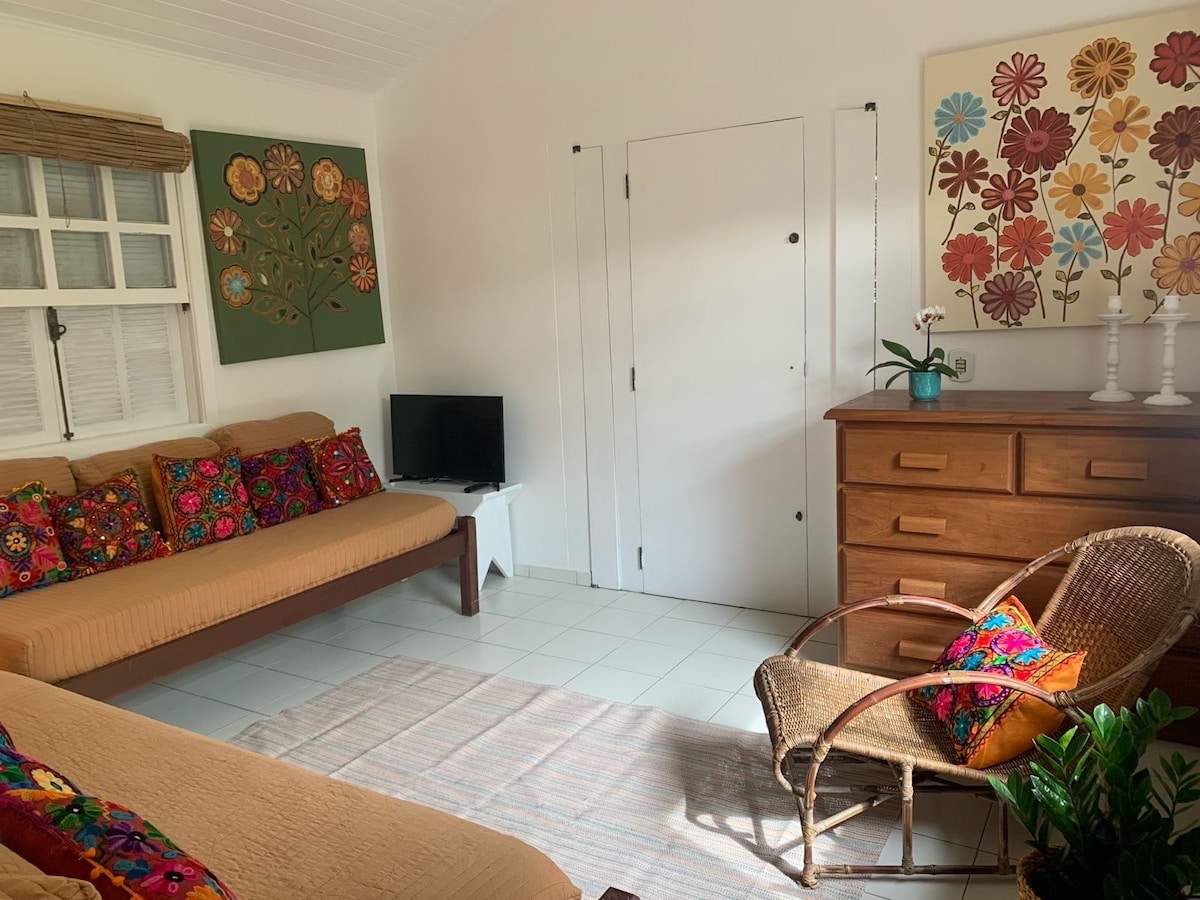Hermosa suite de una habitación con cocina integrada en el segundo piso de mi casa a solo 30 pasos del borde de Prainha, una de las mejores playas de la ciudad Contiene una cama box, cocina completa, baño y ventilador de techo. Internet local 200 MB Cocina privada con minibar, estufa, microondas, licuadora y todos los utensilios para hacer una comida Mesa para Home-office Smart TV 4K Estacionamiento de pago cerca del lugar Aceptamos mascotas Pequeña escalera hasta el alojamiento como en las fotos.