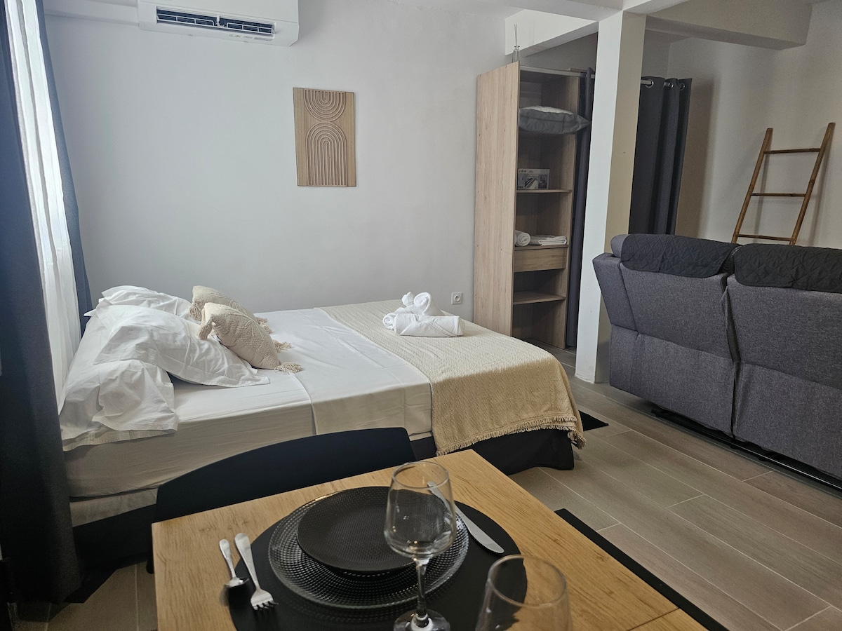 Bienvenido a l'Élégance Citadine, su alojamiento premium de 55 m² en el corazón de Cayena. Este apartamento moderno y urbano, totalmente climatizado, ha sido diseñado para alojar hasta 4 personas con total comodidad: un espacio principal para dormir, un elegante sofá cama e incluso una zona de oficina funcional, ideal para sus misiones profesionales o reuniones remotas.