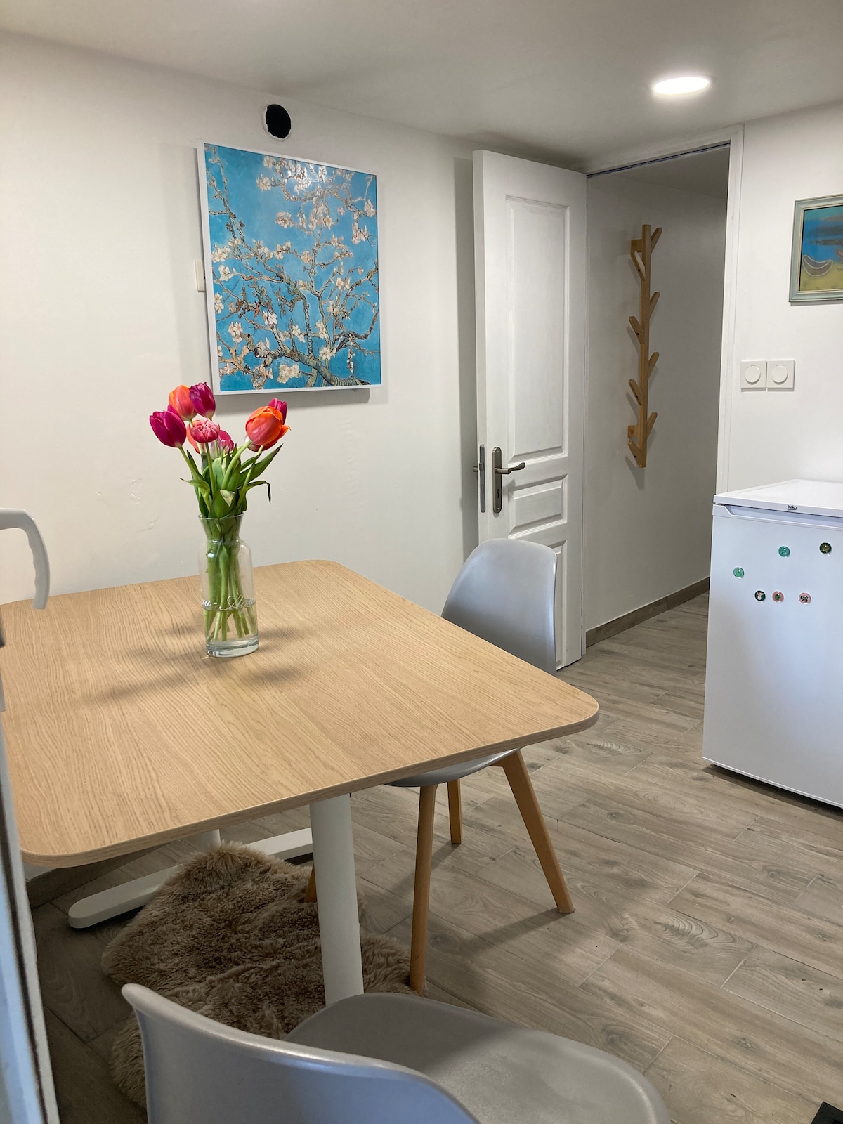 🌿 Un capullo de serenidad en el fondo del jardín🌿 Regálate un paréntesis de calma y confort en nuestra dependencia renovada con cuidado ✨ Encontrará una cálida sala de estar con zona de comedor, sofá cama, TV, WiFi y una cocina equipada. La acogedora habitación (cama de 160x200) le invita al descanso, con un baño moderno (ducha, secador de pelo). Se proporcionan sábanas y de baño. Estaremos encantados de recibirle y hacer que su estancia sea inolvidable. 😊