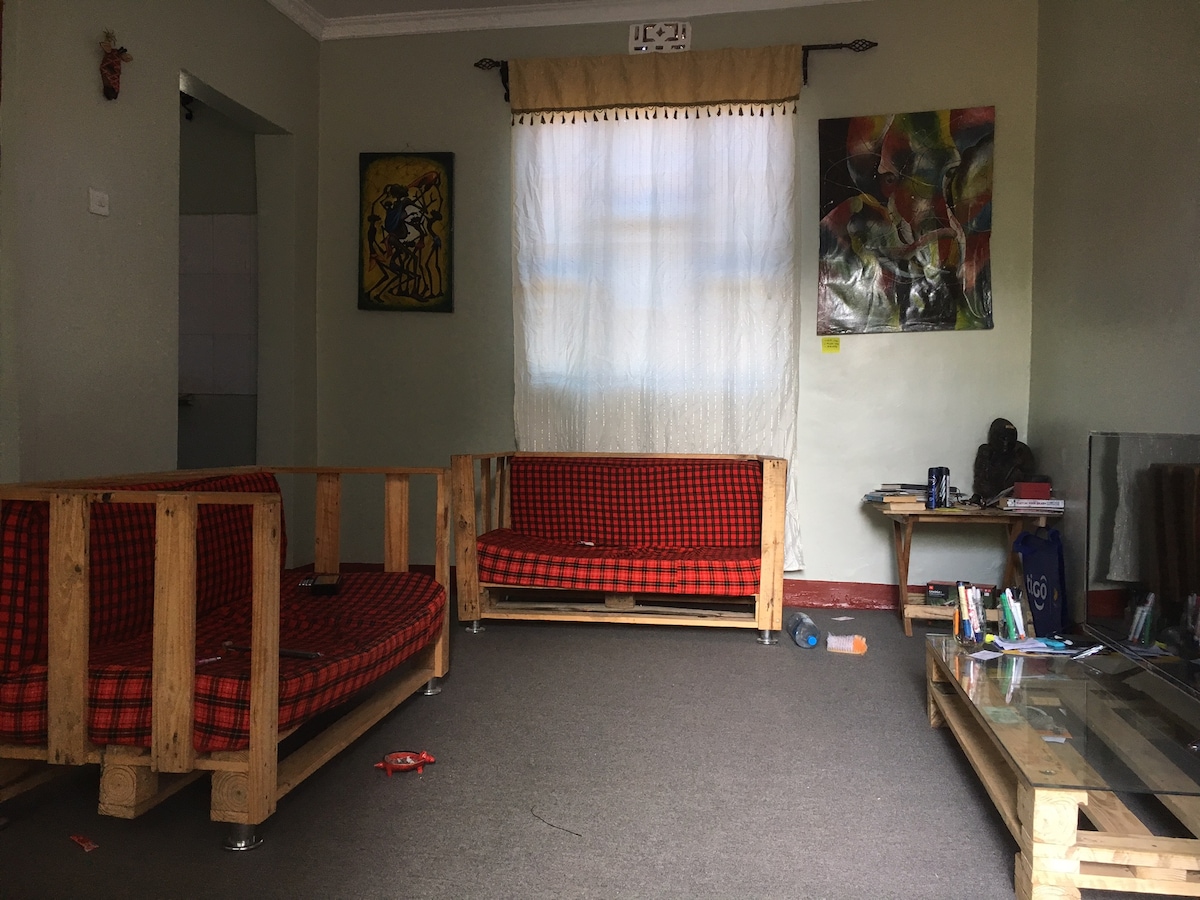 Un alojamiento limpio, cómodo y con una buena relación calidad-precio con wifi rápido, un gran jardín y perros residentes amigables. Perfecto para viajeros que prefieren un alojamiento sencillo y honesto en lugar de un hotel. Ideal para los amantes de los perros: si no te sientes cómodo con los perros, es posible que este no sea el lugar adecuado. Dormitorio totalmente amueblado, baño privado, espacio de trabajo, a 1,5 km de la Torre del Reloj de Arusha y del centro de la ciudad.