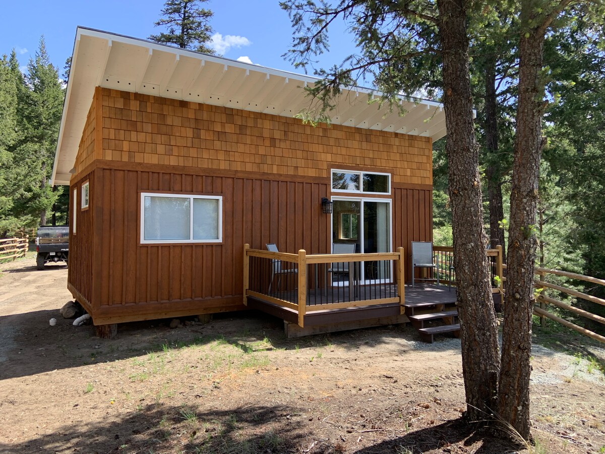 Cabaña artesanal junto a un pequeño estanque en el bosque. Despiértate con la suave luz del bosque y el canto de los pájaros. El porche cerrado cuenta con enormes ventanas que se pueden abrir completamente para disfrutar de una sensación exterior. La propiedad está frente al lago y los huéspedes tienen acceso a un pequeño lago sin motor donde pueden remar, flotar y nadar. La propiedad está a 20 minutos de Sun Peaks, rodeada de rutas de senderismo, lagos, campos de golf y muchas actividades al aire libre.