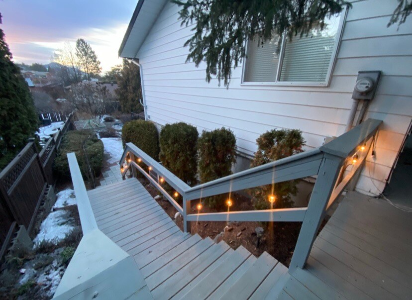 A relaxing retreat for couples, solo adventurers or remote work. Private, above ground, King Suite- Barrel sauna. King bed, plush linens, private laundry, Fast WIFI. Fully stocked kitchen-gourmet coffee, light, grab and go breakfast included. Melt in the barrel sauna then relax on a secluded, year-round sheltered patio with a fire table, cozy seating and barbeque all in a quiet, fenced back yard. 10 minutes to downtown, 55 minutes to Sun Peaks. The perfect base for your next getaway.