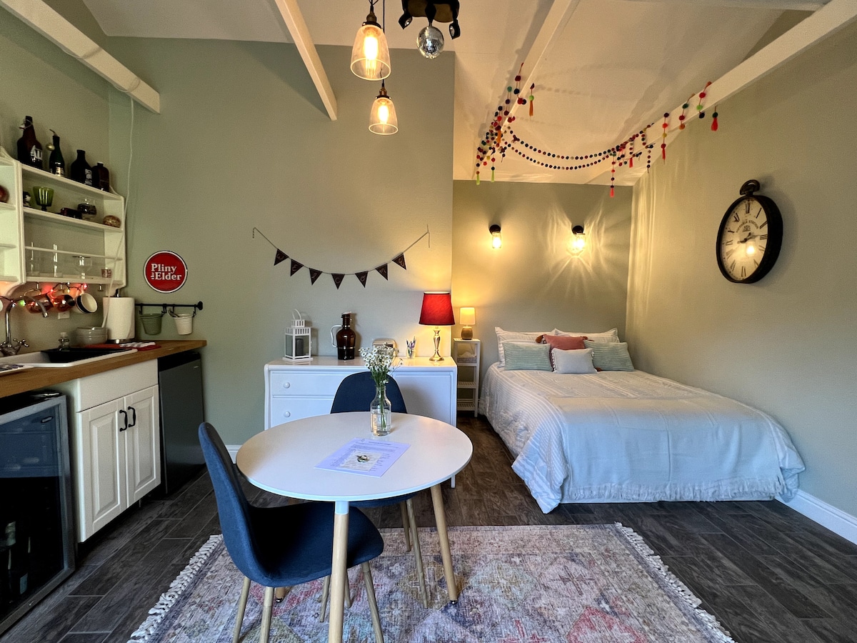Ten todo el Área de la Bahía al alcance de tu mano... ¡y justo afuera de tu ventana! Este estudio privado escondido en las estribaciones de Oakland es el punto de partida perfecto para aventuras. A 9 minutos en auto y puedes estar en el tren a San Francisco. El Coliseo y las secuoyas están a pocos minutos, al igual que muchas otras atracciones*. Te daremos la bienvenida a casa con una cómoda cama tamaño king y una serena vista al jardín. Disfruta del café/té mientras te instalas en la mesa, y nuestro wifi de alta velocidad te tiene cubierto. ¿Tienes un vehículo eléctrico? ¡Carga nivel 2 durante la noche (J1772)!