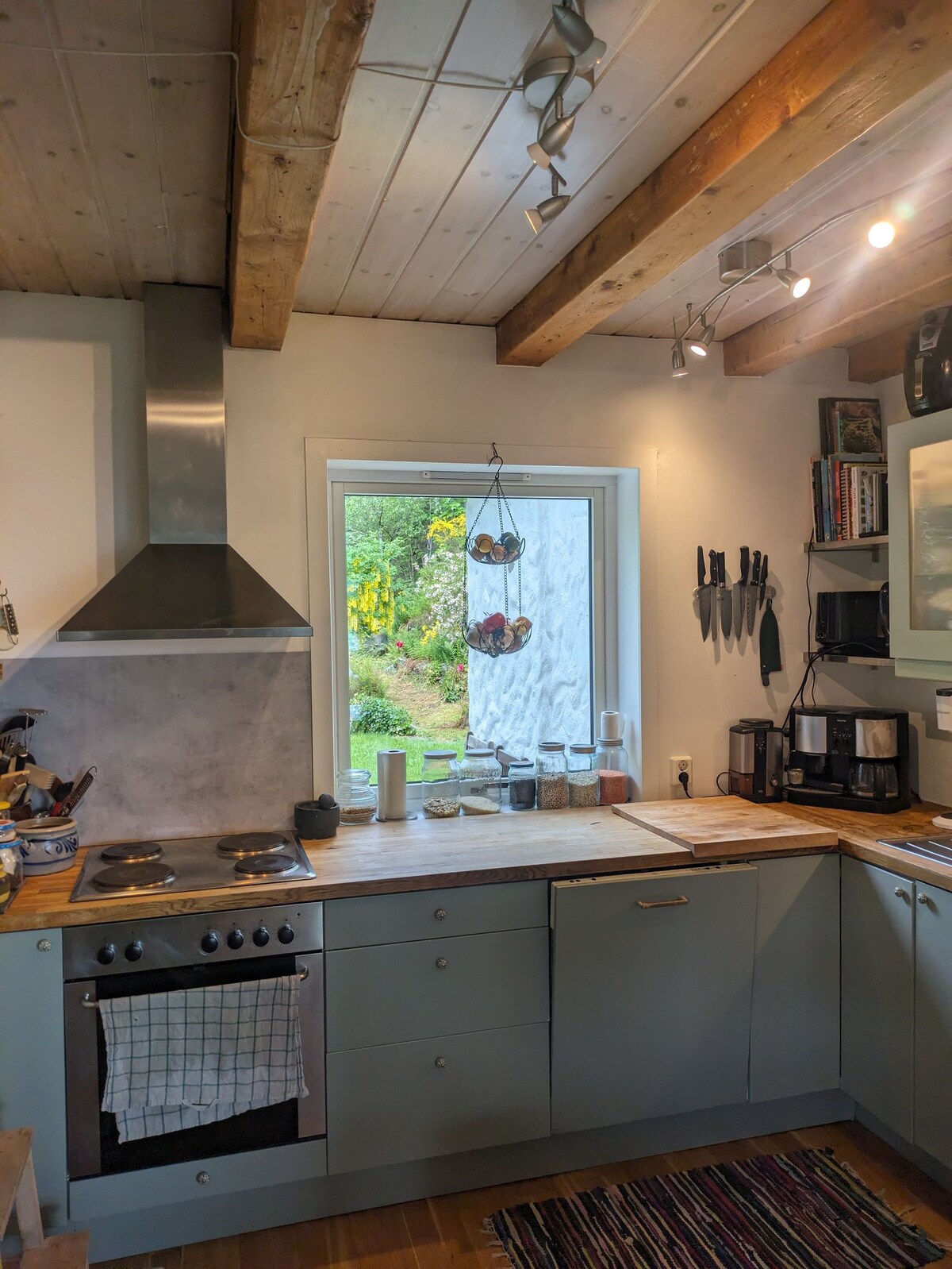 Recarga las pilas en esta estancia única y tranquila. Disfruta de las vistas al mar en la mesa de la cocina, la mesa de centro, en la sala de estar al aire libre o en una de las excelentes áreas al aire libre del jardín. Enciende la chimenea desde la cocina hasta la sala de estar o date un baño encantador en la antigua bañera con patas. La casa está en una zona tranquila, mientras que es céntrica. A solo 30 minutos en auto de Bergen y a 10 minutos en auto del centro de Knarvik. A poca distancia a pie de la tienda Kiwi más cercana.