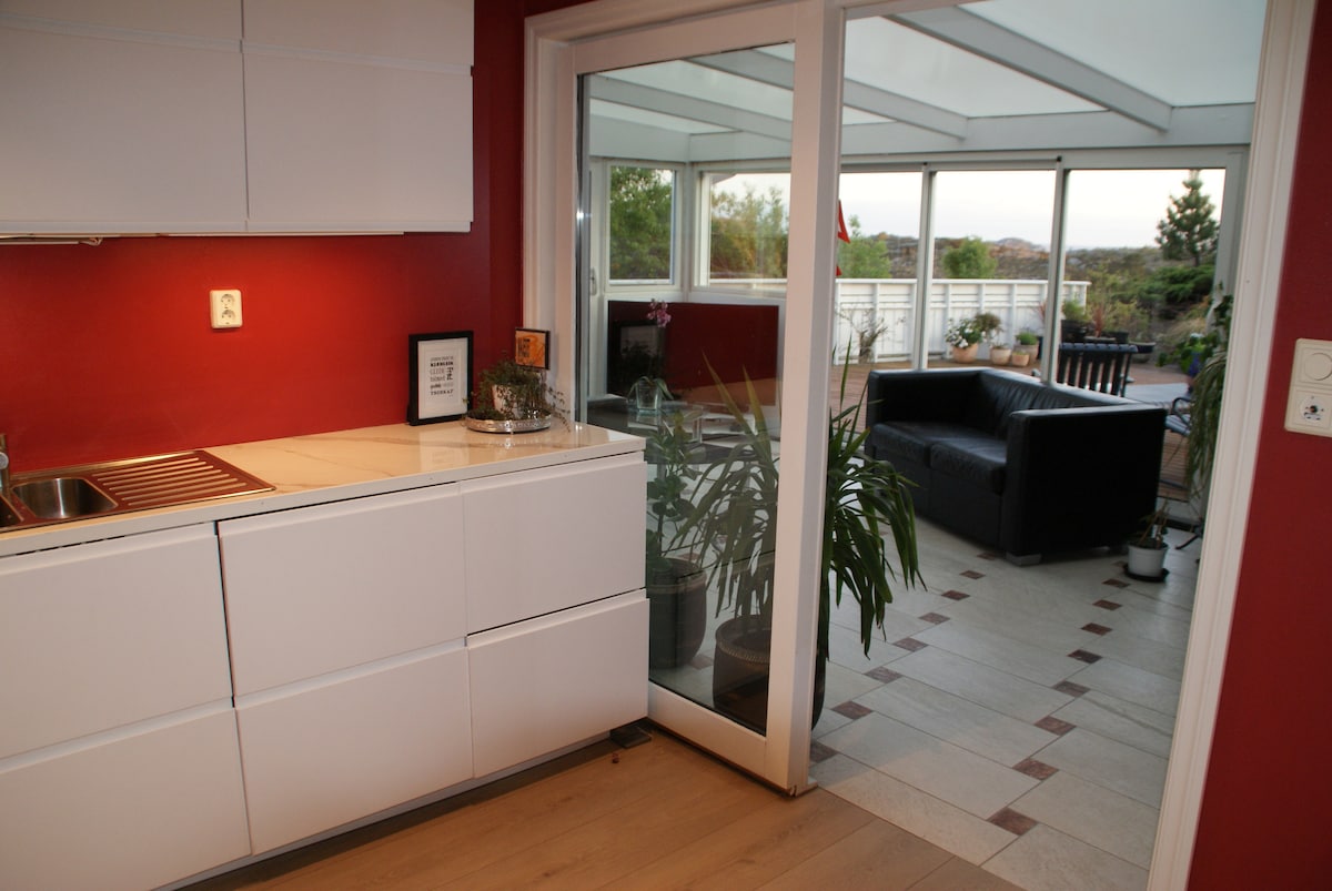 Te damos la bienvenida a nuestra vivienda privada. Juguetes, suministros de dibujo y todo lo demás que un niño puede desear, puedes usar libremente. 3 dormitorios con una cama doble. Una sala de estar tipo loft con una cama doble, así como un sofá cama con dos lugares para dormir. Una terraza con salón y una gran mesa de comedor. El sol de la mañana a la noche. Cargador de coche eléctrico, observador en el techo, calefacción por suelo radiante, bomba de calor en el 1.° piso y 2.° piso que se puede utilizar en calefacción (aire acondicionado) y días fríos. Televisión con AppleTV con suscripciones que se pueden utilizar libremente. A 3 minutos de la casa se encuentra "Træet Badeplass"
