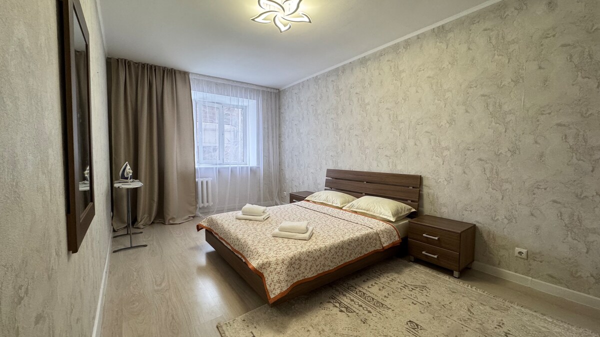 ¡Te damos la bienvenida al acogedor apartamento cerca del lago y del jardín botánico! 🌿 📍 Ubicación perfecta La orilla izquierda, cerca del jardín botánico, el lago Taldykol, Mega Silk Way, EXPO y centros de negocios. 🏡 Comodidad y confort Renovación moderna, silencio, aire fresco y ambiente luminoso: todo para tu ocio y trabajo. ¡Perfecto para familias, parejas y huéspedes de negocios!