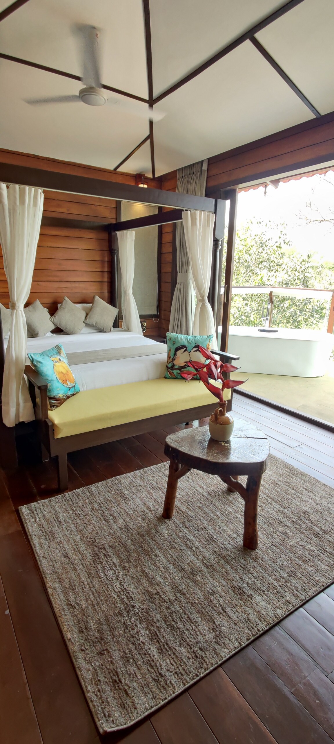 Villa on a hill, overlooking the ocean. Set in a gated community with a club house. Well equipped kitchen with microwave, induction, fridge, cutlery and crockery. High speed internet and work desk to work in comfort. Great entertainment system with a home theatre set up. Overall a great place to unwind .