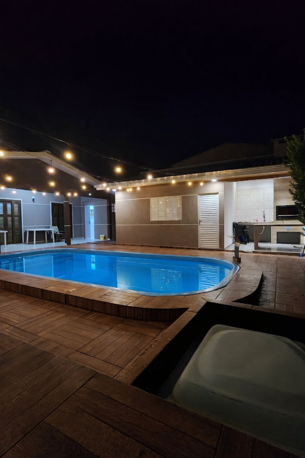 Relájate con toda tu familia en un nuevo alojamiento encantador y acogedor. La estructura es moderna y diseñada, piscina con calefacción solar, amplia zona de ocio, barbacoa equipada, habitaciones con aire acondicionado Daikin activado a través de Wi-Fi, grifos y duchas con calefacción por gas, alarma monitoreada las 24 horas y cámaras externas. Ofrecemos un carrito de playa, sillas y sombrilla. Disfruta de buenos momentos. A 7 minutos del envío a Ilha do Mel.