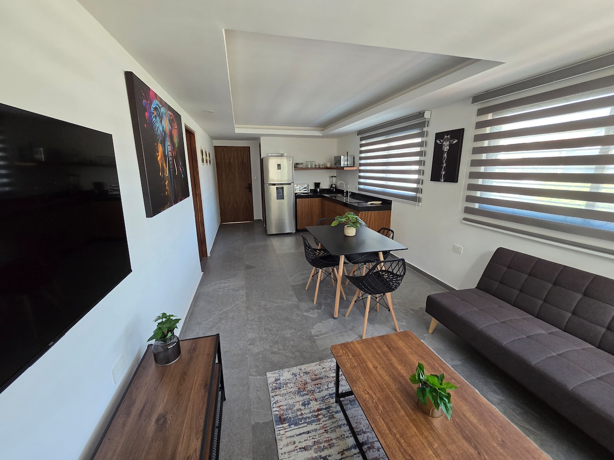 Amplio departamento con una excelente y segura ubicación, SIN estacionamiento a escasos metros podrás encontrar el Estadio de Beisbol de los Olmecas, Universidad UVM, bares, restaurantes de todos los tipos, farmacias, a 5 minutos en carro de plaza Altabrisa, supermercados. 2 camas Queen size y 1.5 baños, cocina completamente equipada, refrigerador con fabrica de hielos y dispensador de agua, sistema de osmosis inversa 5 etapas para purificar el agua, WiFi de alta velocidad. Muy comodo!!