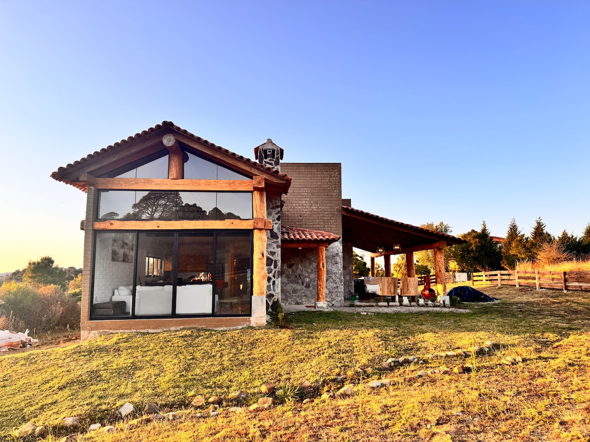 Cabaña a pie de la presa. Cuenta con un hermoso porche protegido con ventanas de cristal. La Cabaña tiene una área común empastada con plantas y arboles, donde encontraras una casa de juegos para niños, terraza y palapa. La terraza cuenta con asador y horno, además de vista 360. Kayak disponible para andar en la presa. Mesa de ping-pong. Cocina equipada. Habitaciones con vistas panorámicas alrededor de la cabaña y un enorme tapanco. Caminatas donde encontraras lugares naturalmente mágicos.