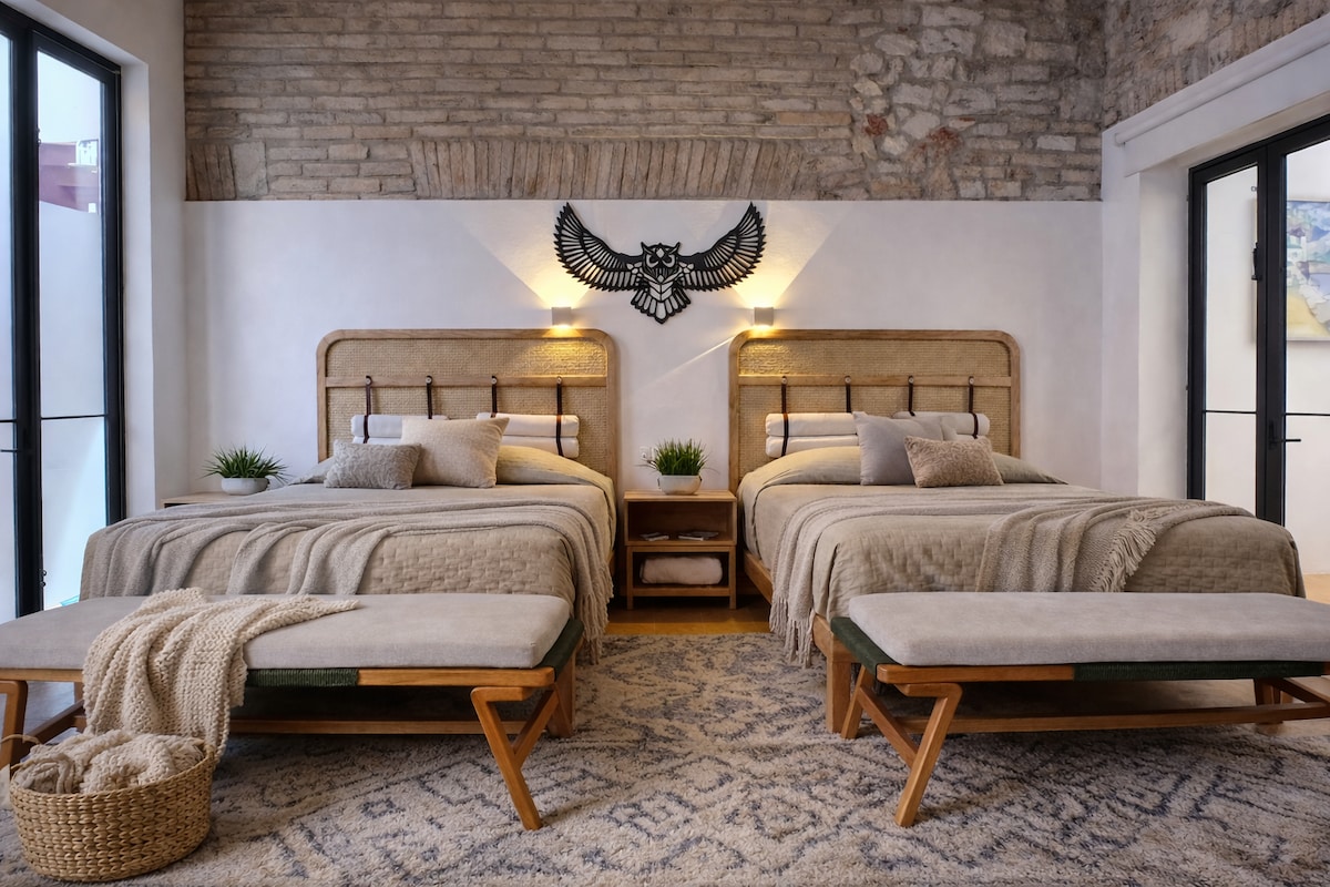 Excelente ubicación en el centro de La ciudad de Puebla, a tan solo 3 cuadras de la catedral. A un paso de una gran variedad de museos, restaurantes y bares de todo tipo. La zona es muy tranquila y te encantará esta suite con su exquisito diseño que fusiona lo moderno con lo antiguo. La habitación cuenta con baño propio, frigobar y horno de microondas para tu comodidad We can support you in: Español, English, & Deutsch