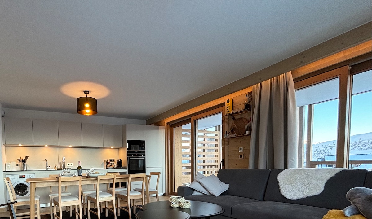 Alpe d'Huez Houses te ofrece este bonito apartamento familiar de 5*, perfectamente equipado, con 1 hermoso dormitorio con terraza y vistas al centro vacacional y a las montañas, una zona para dormir para 3 niños o 1 o 2 adultos. ¡ESQUIANDO por completo! Un baño con ducha y un inodoro separado, una hermosa sala de estar con una vista completamente despejada de todo el centro vacacional y la montaña. Esta residencia de lujo es segura, tienes acceso a la piscina climatizada con vistas panorámicas, sala de deportes y bienestar con sauna. A 5* welco
