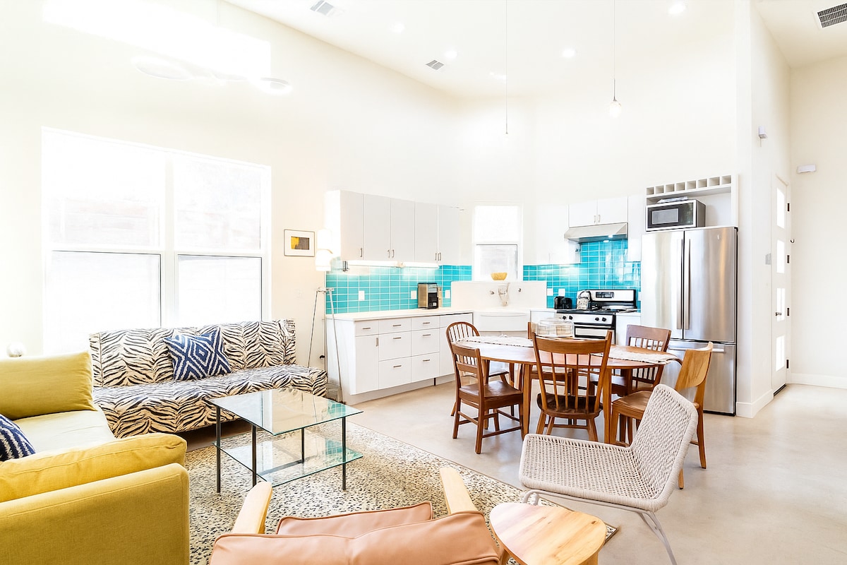 Relájate en este hermoso espacio de nueva construcción diseñado por arquitectos, cómodo y construido para grupos de solteros o familias que tienen la visita más divertida y relajante de Austin imaginable. Amplio, con espacio al aire libre totalmente privado, no querrás irte de Austin o de esta casa. A poca distancia a pie de toneladas de restaurantes geniales, bares, una panadería de destino, cafés, el mejor acceso al lago y al sendero de la ciudad, la zona residencial más cercana a la 6ª, el centro de la ciudad, Rainey, etc. Casa verdaderamente PERFECTA en la MEJOR ubicación.