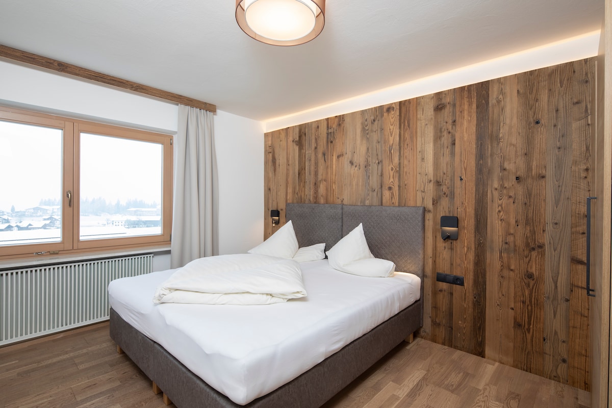 Welcome to Saalbach Suites by ALPS RESORTS! Enjoy a relaxing stay in a stylish junior suite featuring a balcony, modern bathroom, and cozy double bed — perfect for 2 guests. HIGHLIGHTS: ✨ Ski-out access: Glide straight from the slopes to your suite! ✨ Pure relaxation in the wellness area with sauna and large heated outdoor pool ✨ Free Wi-Fi and convenient parking right on the property ✨ Joker Card included – enjoy numerous extras and discounts on activities during the summer season.