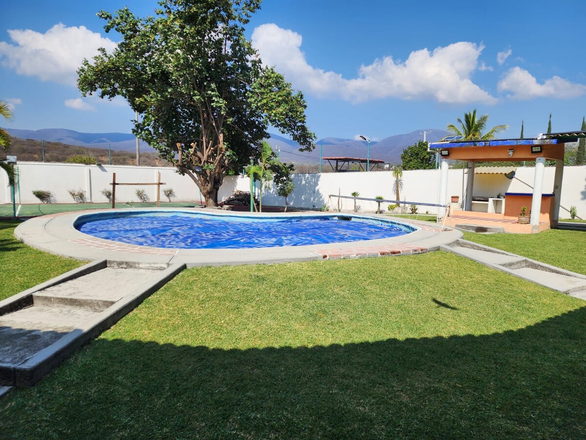 *Hermosa casa para descanso o eventos en Morelos. *Cuenta con 7 habitaciones hasta para 25 personas y alberca climatizada con paneles solares. *Es un gran lugar para relajarse y disfrutar la tranquilidad de la naturaleza y el campo. *Tenemos el Sky Dive Cuautla a 4 kilómetros de nosotros. *Nuestras instalaciones son ideales para reuniones de trabajo, team meetings y eventos relacionados con empresas o desarrollo humano. (Pidenos informes para ayudarte a creear el evento ideal a tu medida)