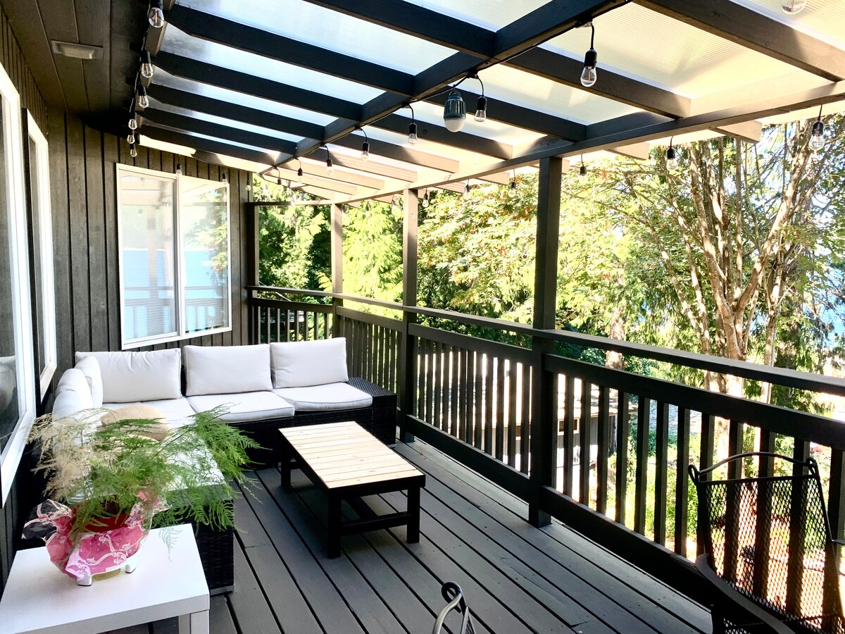Casa de huéspedes aislada, luminosa y moderna con vistas completas al jardín, a 5 minutos de la autopista y a 10 minutos del ferry en el oeste de Bremerton. El espacio es una unidad independiente separada de nuestra casa principal escondida de la calle principal, enclavada entre los cedros y abetos a lo largo de Mud Bay que conecta con Puget Sound. La habitación tiene una vista completa de 270 grados de los jardines y árboles, cama tamaño queen murphy, nevera, fregadero, microondas, estufa de leña y baño, completo con ducha de lluvia al aire libre de 16 pulgadas.