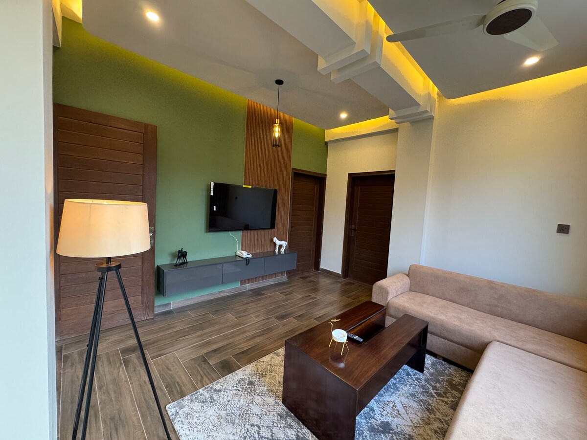 Escápate a la tranquilidad en Bhurban: 1BHK moderno con vistas impresionantes Descubre el refugio de montaña perfecto en el corazón de Bhurban. Ubicado en medio de exuberantes paisajes verdes, este encantador apartamento de 1 dormitorio ofrece un refugio sereno a solo unos pasos del prestigioso Opulent Hotel y a solo 5-7 minutos en auto de Pearl-Continental Bhurban. Ya sea que estés buscando una escapada de fin de semana tranquila o una estancia prolongada en el regazo de la naturaleza, este departamento promete una comodidad y tranquilidad inigualables.
