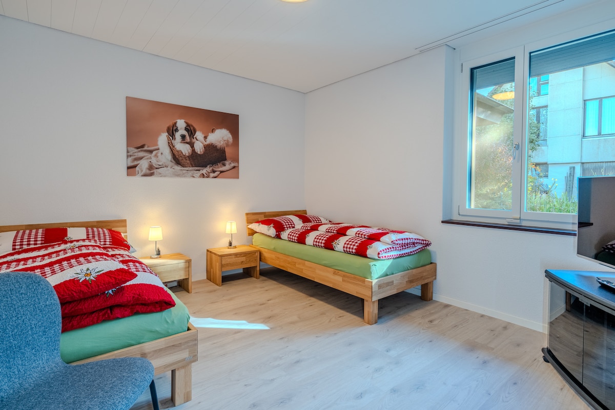 Ideal para solteros o parejas que buscan un lugar acogedor para hospedarse. En solo 30 minutos estarás en tren en la estación central de Zúrich (HB) y en 13 minutos puedes llegar al aeropuerto de Zúrich en auto. El departamento se alquila sin un dormitorio, ya que guardo artículos personales allí. Hay un cómodo sofá disponible para dormir; alternativamente, también se puede proporcionar un colchón de 160 cm. El precio incluye un espacio de estacionamiento.