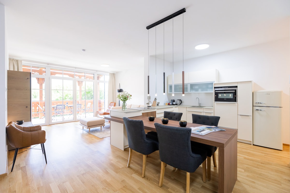 ¡GUAU. Simplemente es impresionante y no hay nada comparable! Nuestros apartamentos equipados con estilo MyCoburg se encuentran en una ubicación perfecta, a solo 3 minutos de la estación de Valley Planai y no están fuera de lugar. Materiales locales, cocinas totalmente equipadas, los mejores lugares para dormir y pasión personal por el diseño de interiores. El coraje de abrazar lo poco convencional, combinando toques de diseño tradicional con estilo contemporáneo. Y también hay un poco de arte.