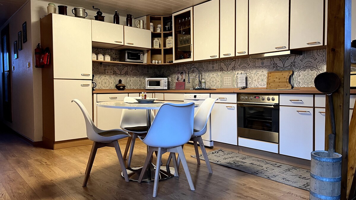Siéntate y relájate en este alojamiento tranquilo y elegante. El apartamento es adecuado para 4 personas en diferentes constelaciones. Se reservó para unas vacaciones familiares, un fin de semana con amigos o por adultos cuyos padres crecieron aquí en el pueblo y a quienes querían regalar un pequeño viaje en el tiempo.