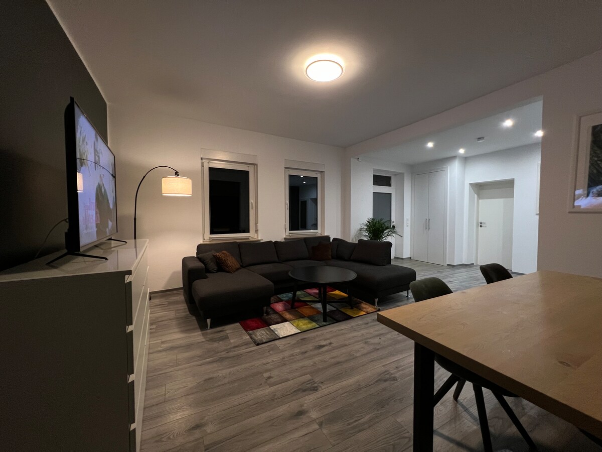 En el barrio de Gartenstadt encontrará nuestro apartamento de vacaciones de 75 m² recién renovado y amueblado con alta calidad. Baño con ducha abierta y trastero, salón-comedor y cocina equipada a medida. En el acogedor dormitorio, una cama con somier y un sofá cama invitan a relajarse. También hay un aseo para invitados y un guardarropa. El apartamento está totalmente equipado con persianas eléctricas. Smart TV (55 pulgadas) con conexión por cable y Netflix disponible.