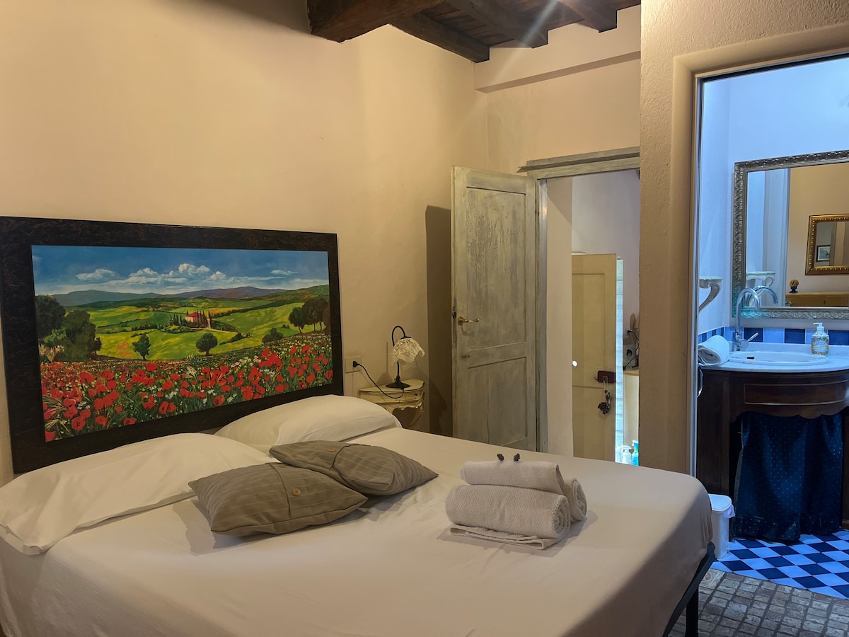 A unique experience in a historical dwelling located in the Chianti region. This medieval castle is situated in a strategic position, surrounded by the major Tuscan touristic attractions. The suite is at the entrance floor level: double bedroom with bathroom, sofa bed for two people, kitchenette, fireplace.