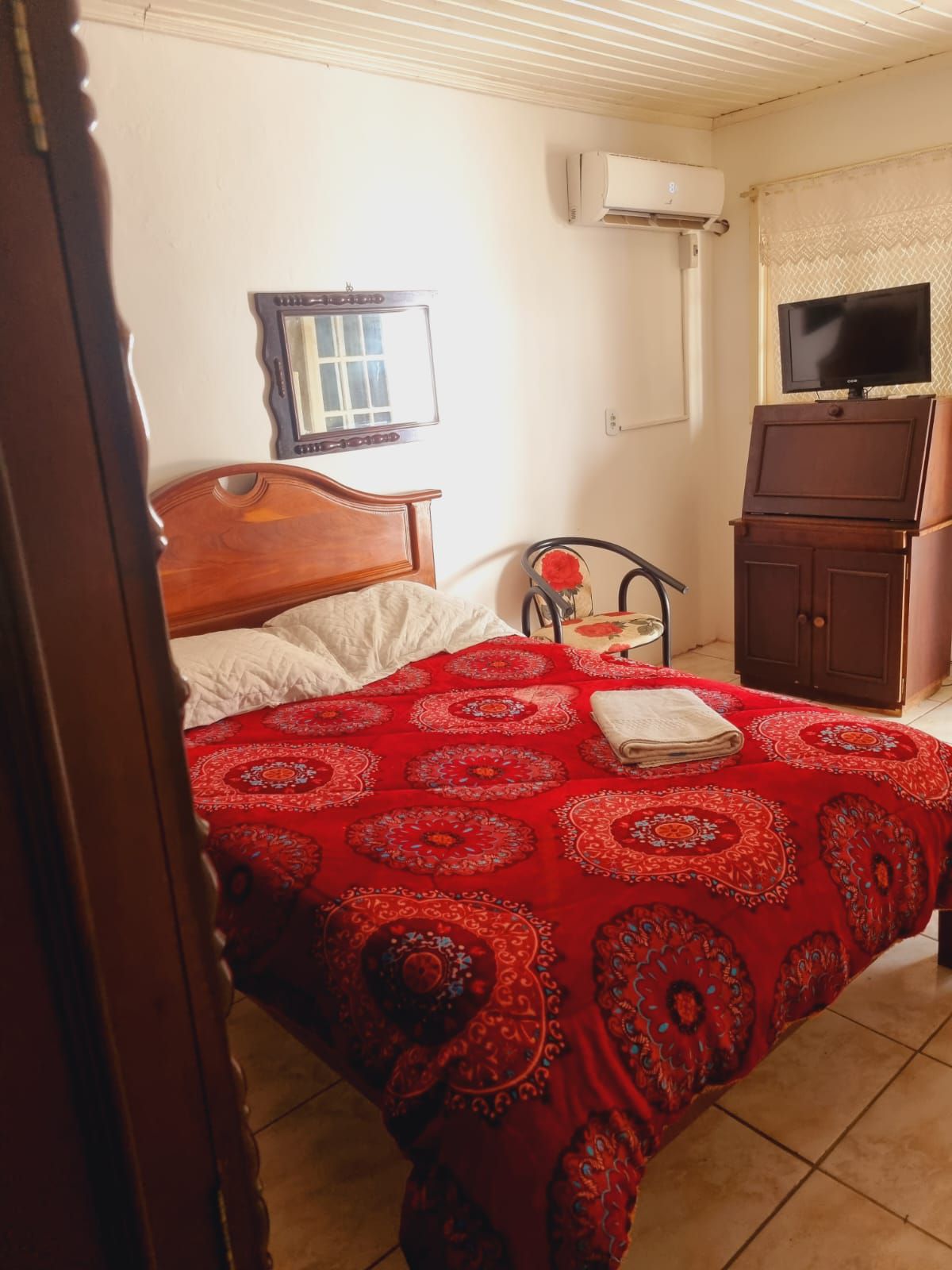 Chalé acogedor en el distrito de São Bernardo, a menos de 4 km de Unipampa y a 4 km del centro de la ciudad, a 450 m de la Avenida Santa Tecla, la principal ruta de acceso a la ciudad. Cocina con todos los utensilios necesarios para la preparación de comidas. Dormitorio con TV inteligente de 32 pulgadas, aire acondicionado frío/calor, Internet de 700 MB Villa totalmente independiente, con un patio totalmente amurallado y un asiento para varios autos. Ideal para familias, tiene una cama doble y un colchón individual adicional, dispuestos en la misma habitación.