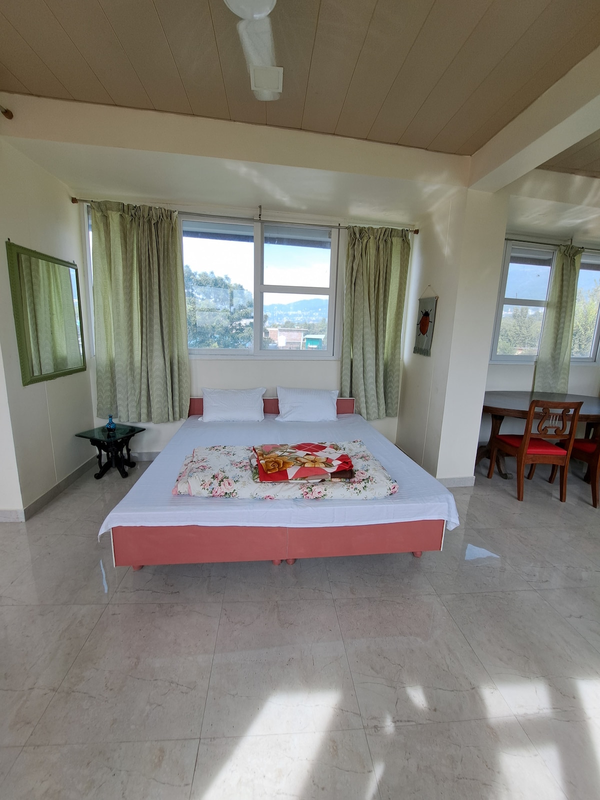 Peaceful 2 BHK Stay with Stunning Dhauladhar Views Stay at our spacious, fully furnished 2 BHK with breathtaking views of the Dhauladhar ranges. Perfect for families, couples, or remote workers, this peaceful home offers everything you need for a comfortable stay. What you'll love: Beautiful mountain views from your balcony Spacious & fully furnished for a cozy stay Fast WiFi & work-friendly space Fully equipped kitchen to cook your meals Calm and peaceful location.